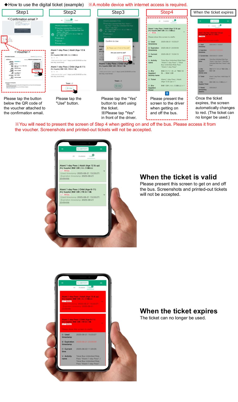 - ※請注意:照片截圖或列印出的紙本票券皆不可使用。