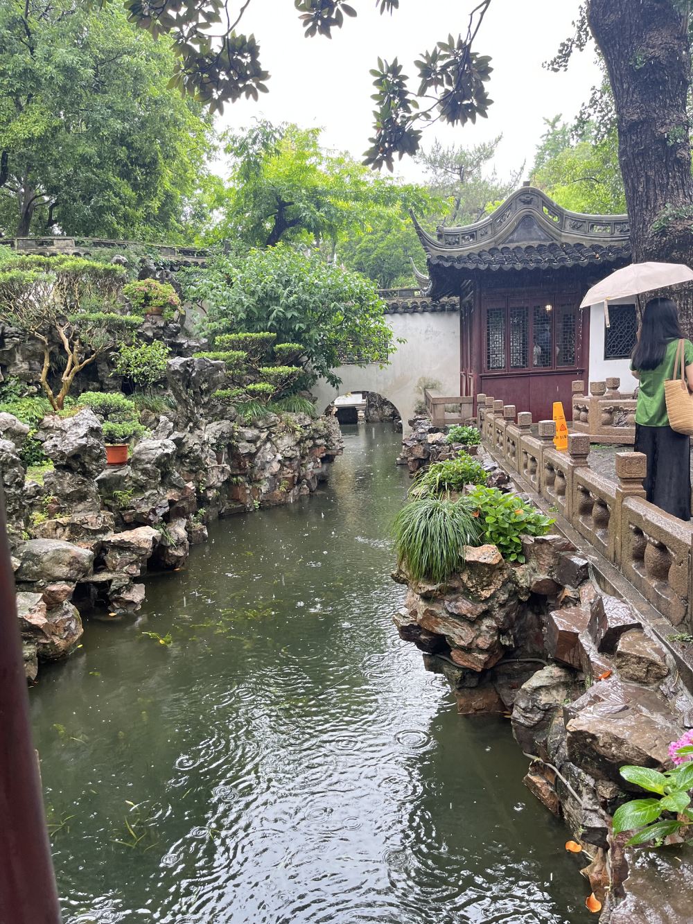 ▲ 近景是豫園商城中心的九曲橋(橋面104塊花崗石板依次雕刻十二個月花卉,正月水仙至臘月臘梅,每步皆蘊四時流轉的園林哲學); 中景是湖心亭-茶樓飛簷; 遠景是上海中心,現代高樓建築。