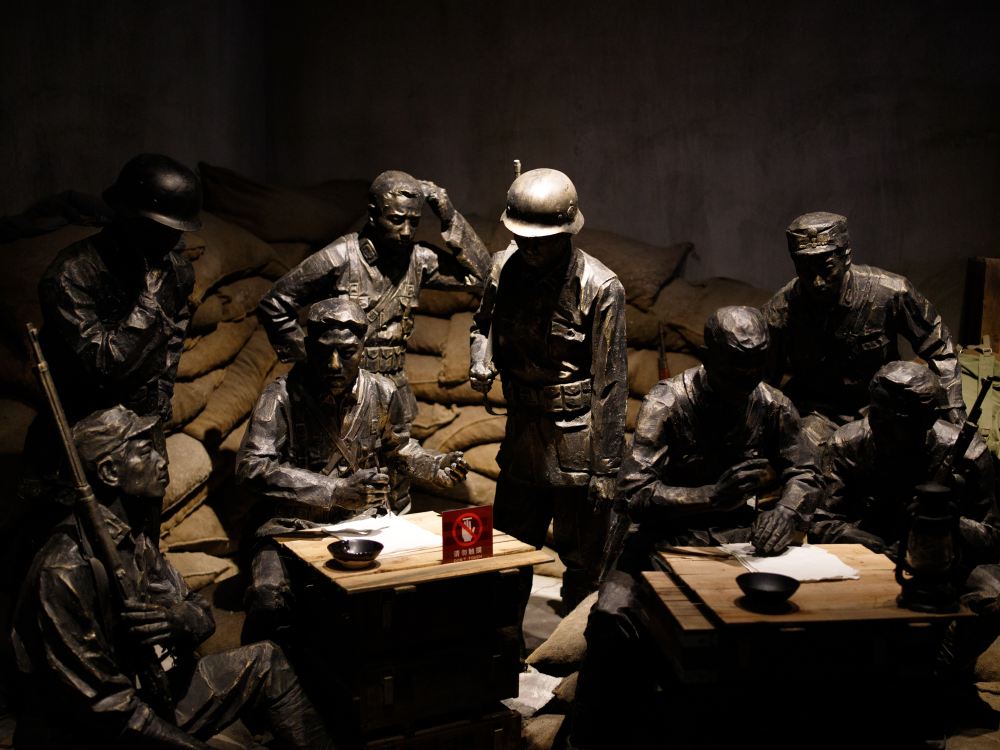 ▲ 四行倉庫的298封絕筆:民族氣節的集體宣誓 生死時刻的集體書寫 遺書總動員 1937年10月26日夜,謝晉元在倉庫內下令全員書寫家書:"每位戰士給家人留下遺言,傾訴保家衛國不畏犧牲的決心"。 現場形成特殊互助場景:識字者代筆、文盲口述,四百餘官兵共完成298封書信,內容涵蓋對父母的孝念、對妻兒的囑託、對祖國的告白。
