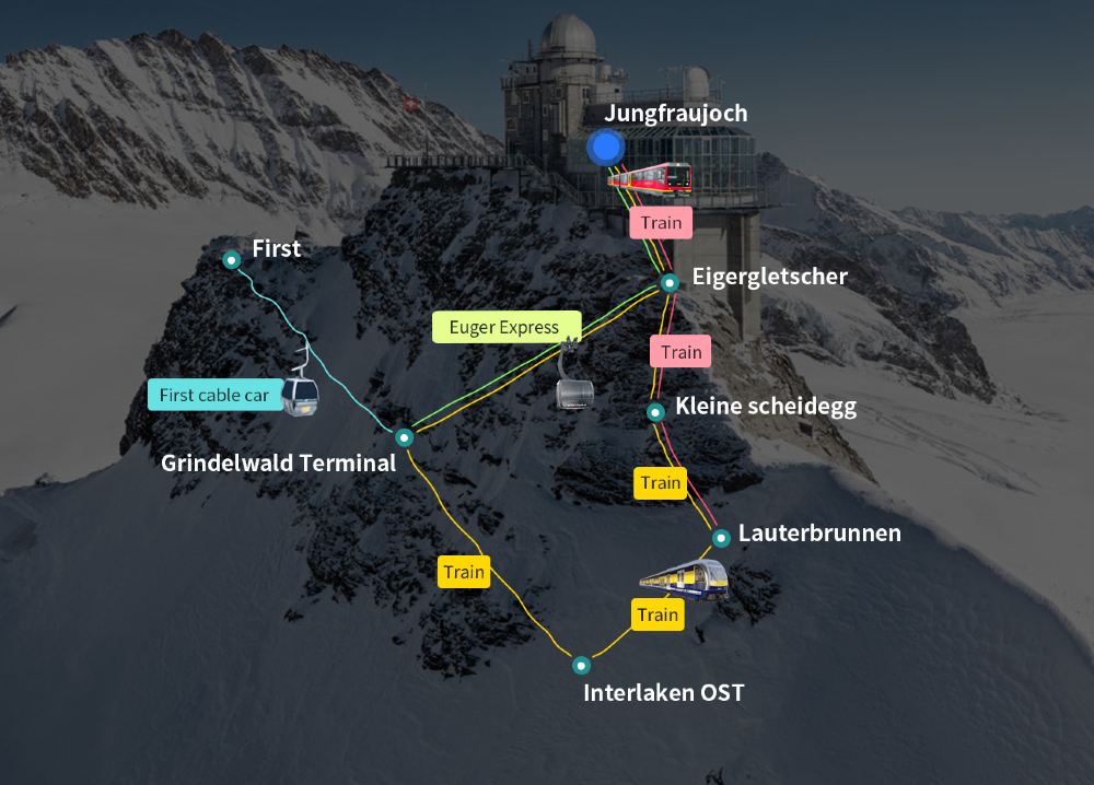 -替您解憂:少女峰火車票線路非常複雜,導遊將帶領您一同遊覽,不錯過任何一班列車。