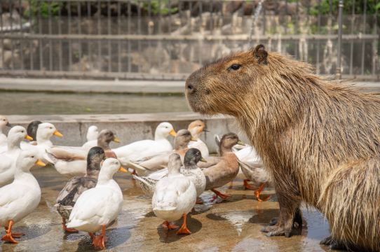 來自南美洲的水豚,性格溫馴和善,圓滾滾的外表加上呆萌表情,為近年來備受矚目的明星萌寵之一!看水豚君慵懶瞇眼泡澡,感受近距離與動物互動的樂趣體驗。