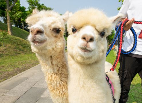 超級萌寵入園作伴!來自紐西蘭品種的可愛羊駝「可可」、「露露」、「拉拉」、「菲菲」晉升為園區內超人氣角色,一出場就吸引遊客們前來拍照互動!
