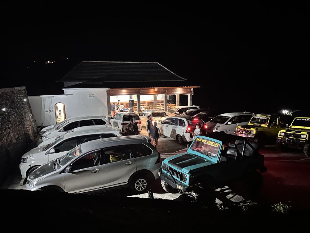 3–5 輛吉普車與 Akasa 咖啡館在基地營集合