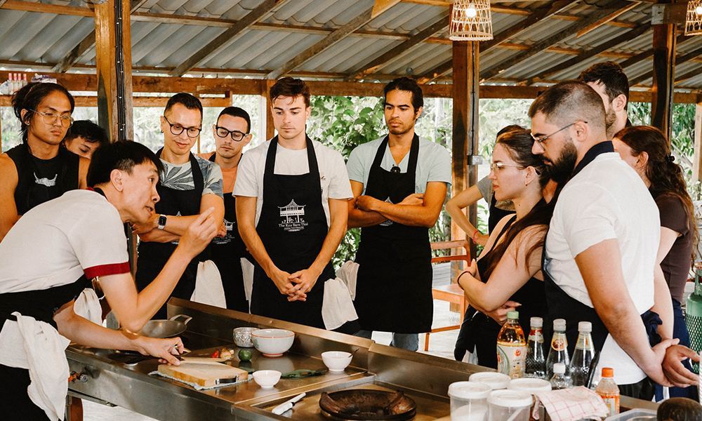 - 學校亮點:The Rice Barn廚房位於城外,距離清邁市中心僅15分鐘車程。學校坐落在一片寧靜的田園環境中,周圍環繞著稻田和鬱鬱蔥蔥的綠植,為學員提供了一個遠離城市喧囂、沉浸於泰國傳統烹飪文化的場所。學校自有農場;經過精心改造後,保留了傳統的泰式建築風格,同時融入了現代化的教學設施。這裡不僅是一個學習烹飪的地方,更是一個體驗泰國鄉村生活、了解當地文化的獨特場所。