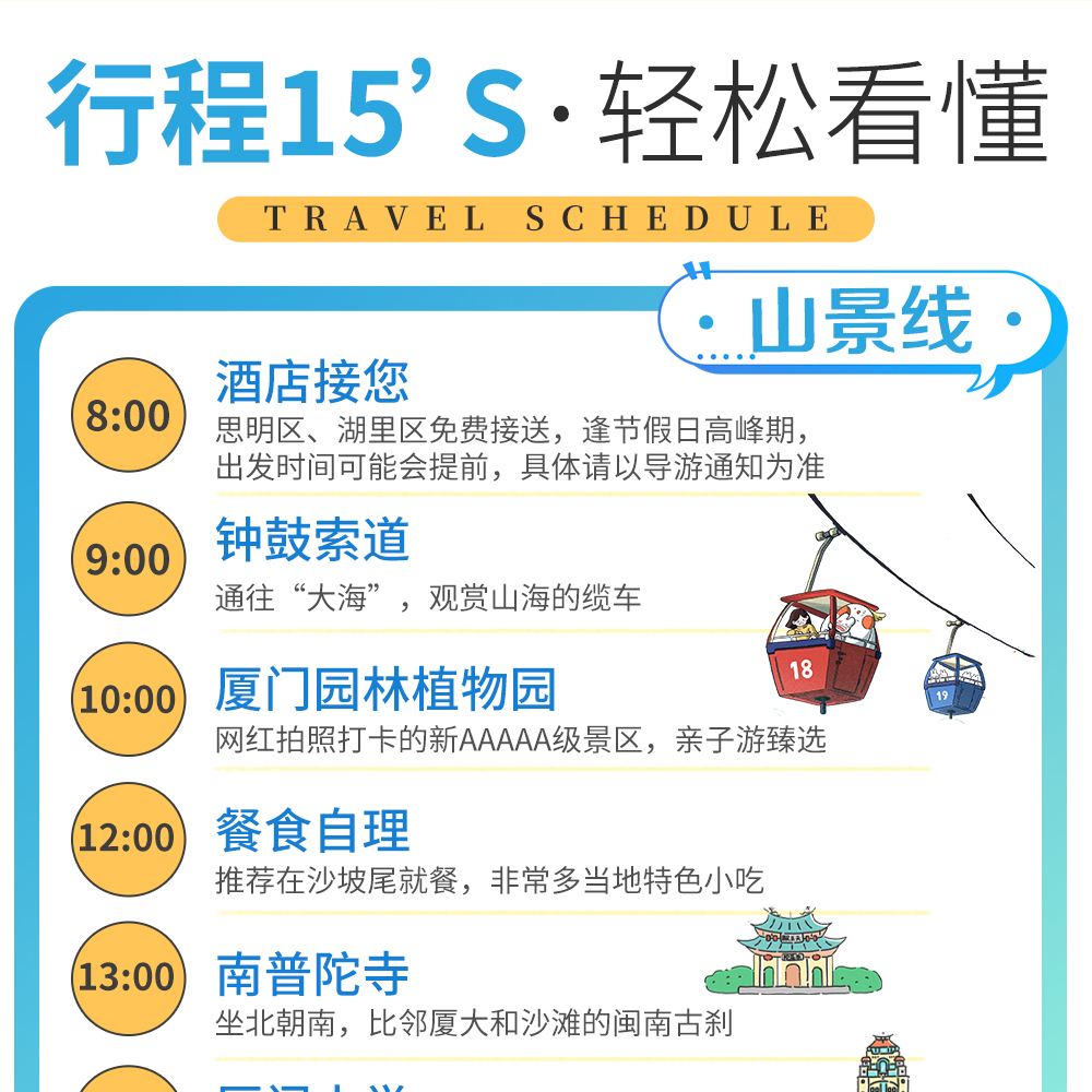 【山景線】鐘鼓索道+南普陀寺+廈門大學+植物園 【海行線】鐘鼓索道+南普陀寺+廈門大學+帆船出海景點活動