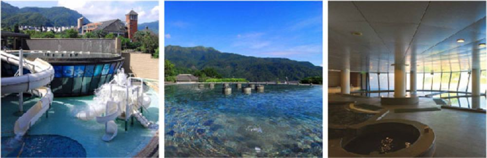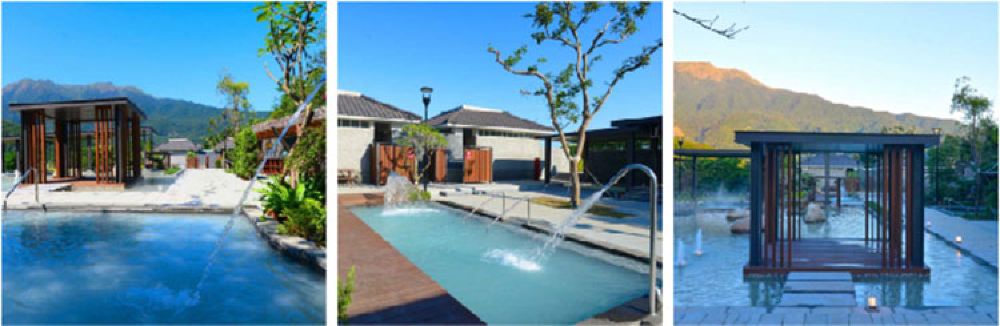 擁有北台灣規模龐大的近2000坪湧泉樂園,為PH值介於5~6的純淨弱酸泉,舒緩坐臥在溫暖的泉水中,毫無束縛地讓柔軟的波浪將身心的疲憊與壓力全都帶走。原石砌製的寬敞浴池,群山環繞,潺潺的水聲、清新悅耳的蟲鳴鳥叫,使您舒展疲憊的身心時感到分外享受。