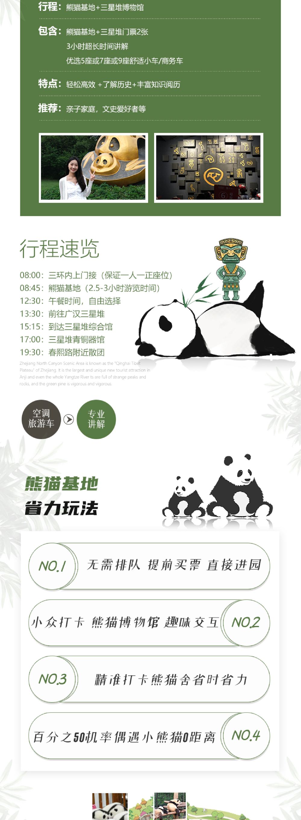 【自營直髮·引領小團】包含三星堆2-3小時專業導遊講解,熊貓基地司機兼導遊陪同講解!