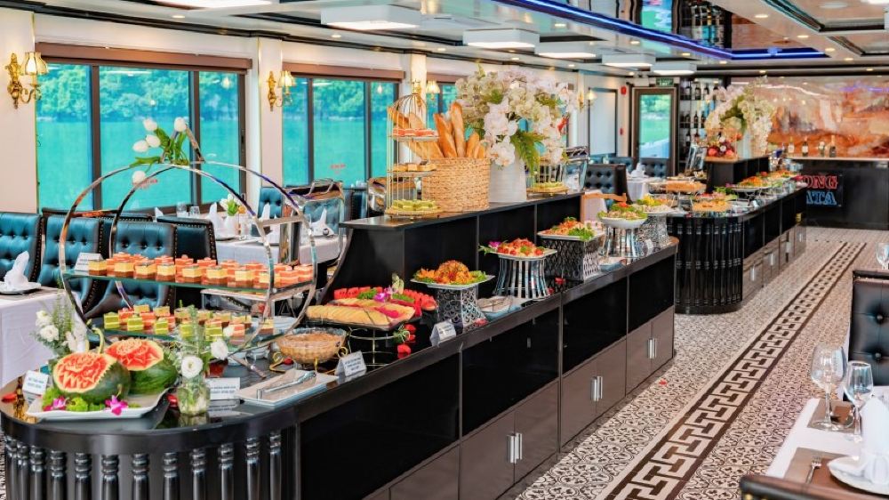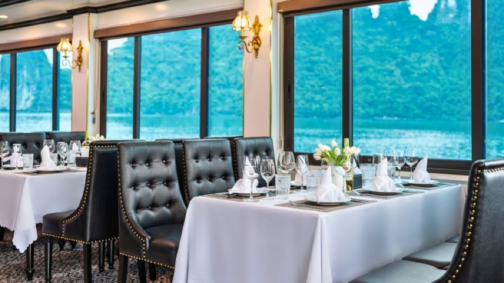 船上餐厅宽敞,拥有现代化的内饰和美味佳肴
