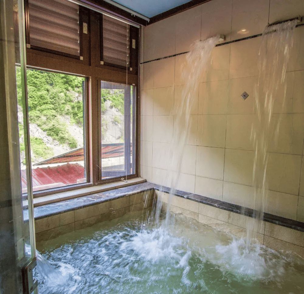大眾裸湯:一邊享受水柱的拍打按摩,半露天式的溫泉SPA大眾湯,能讓貴賓有個美妙的溫泉之旅
