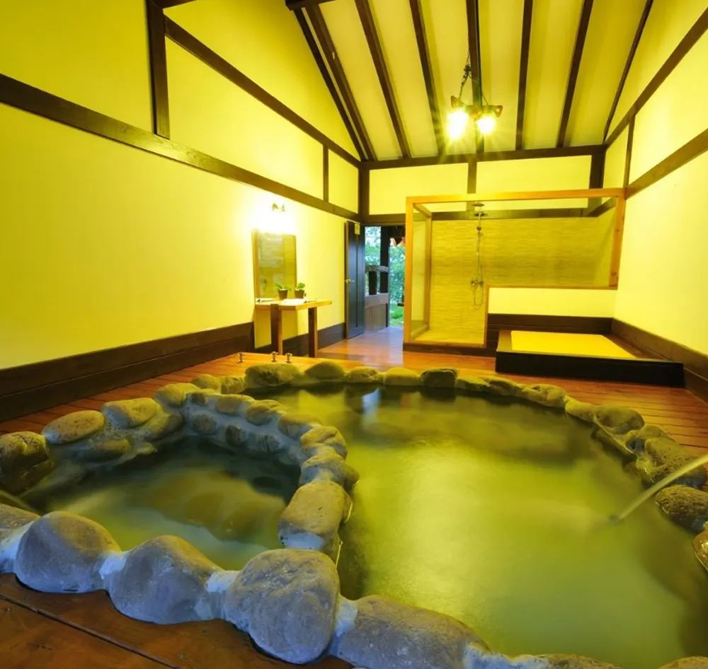 和風造景私人湯屋,享受石砌冷熱雙池,冰火雙重獨特享受