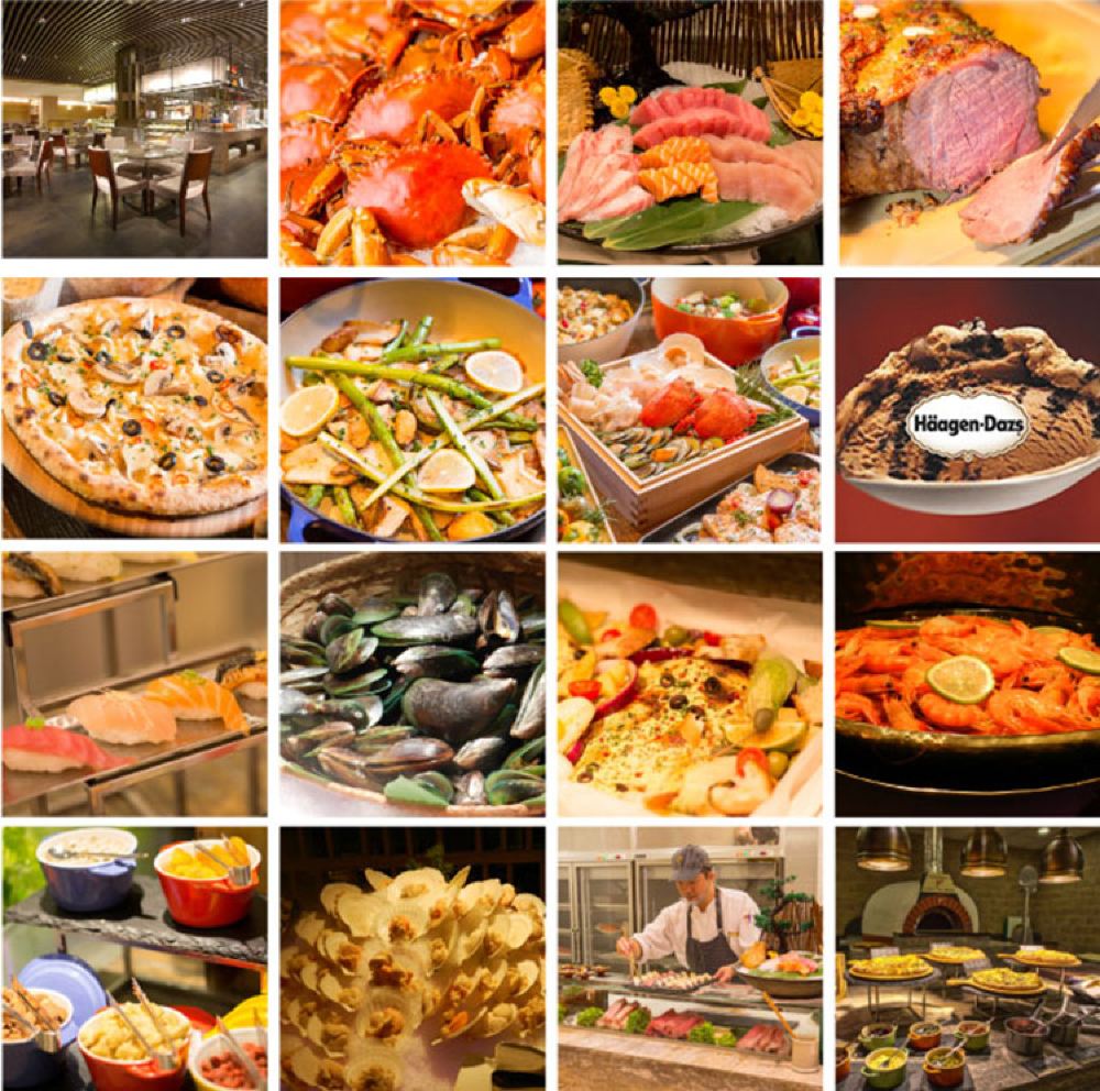 時尚的裝潢設計,搭配全新概念的星級自助百匯,多樣化美食饗宴,以互動、共享的創意概念,邀請您與親朋好友「同饗」主廚名菜。
