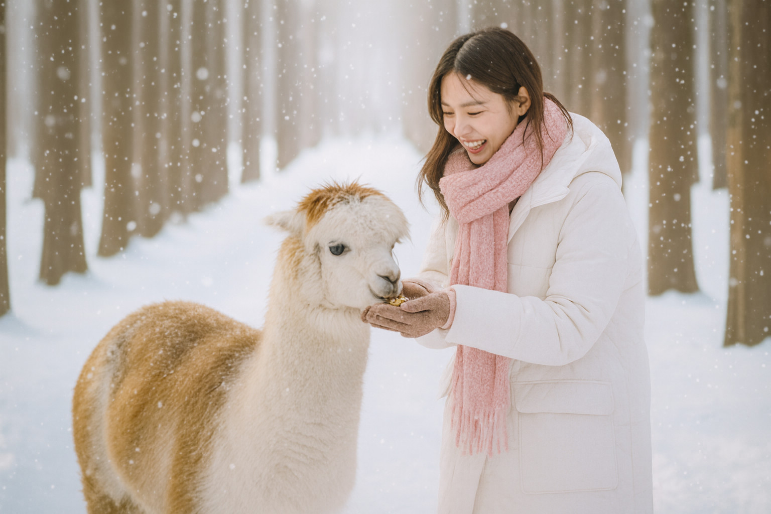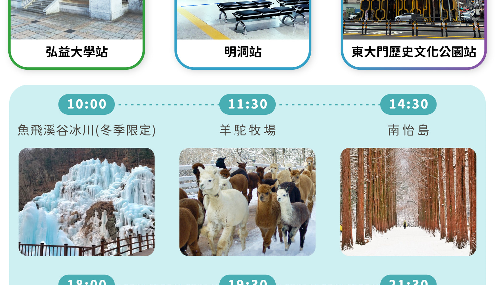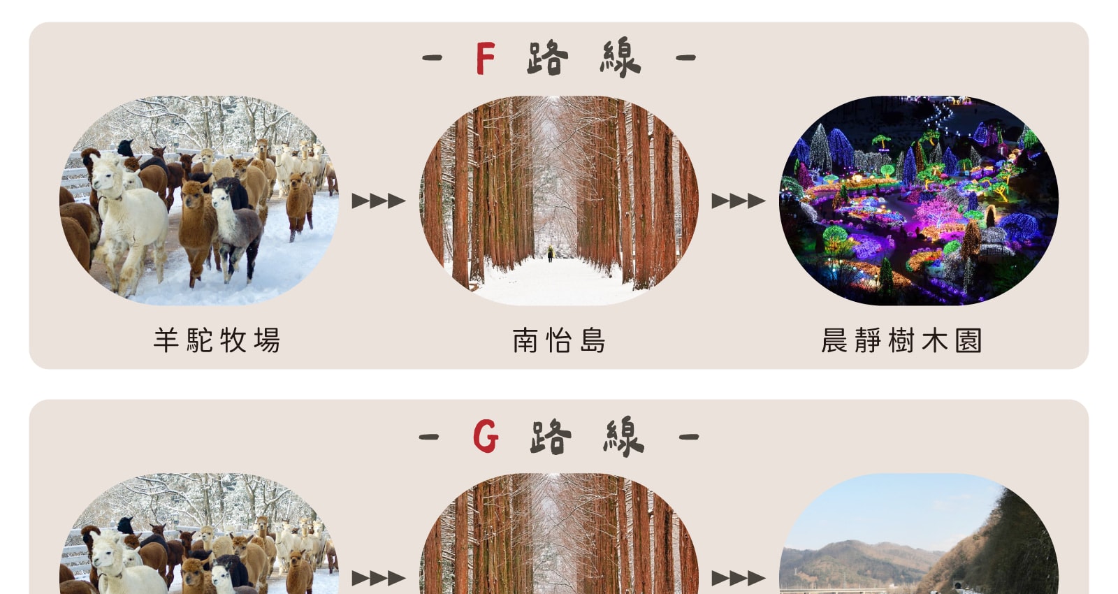 冬季F) 魚飛溪谷冰川+草泥馬+南怡島+晨靜樹木園燈光節