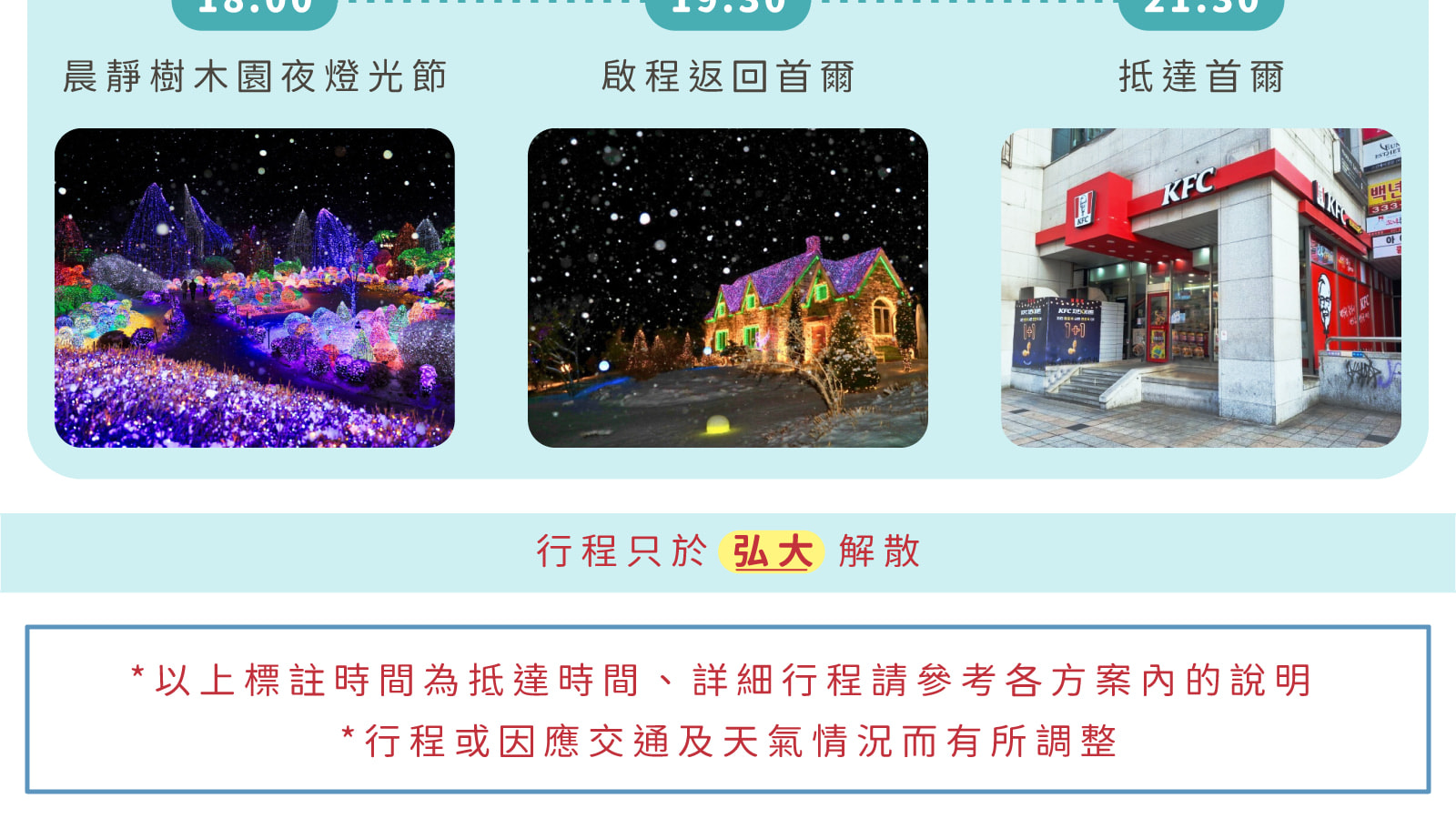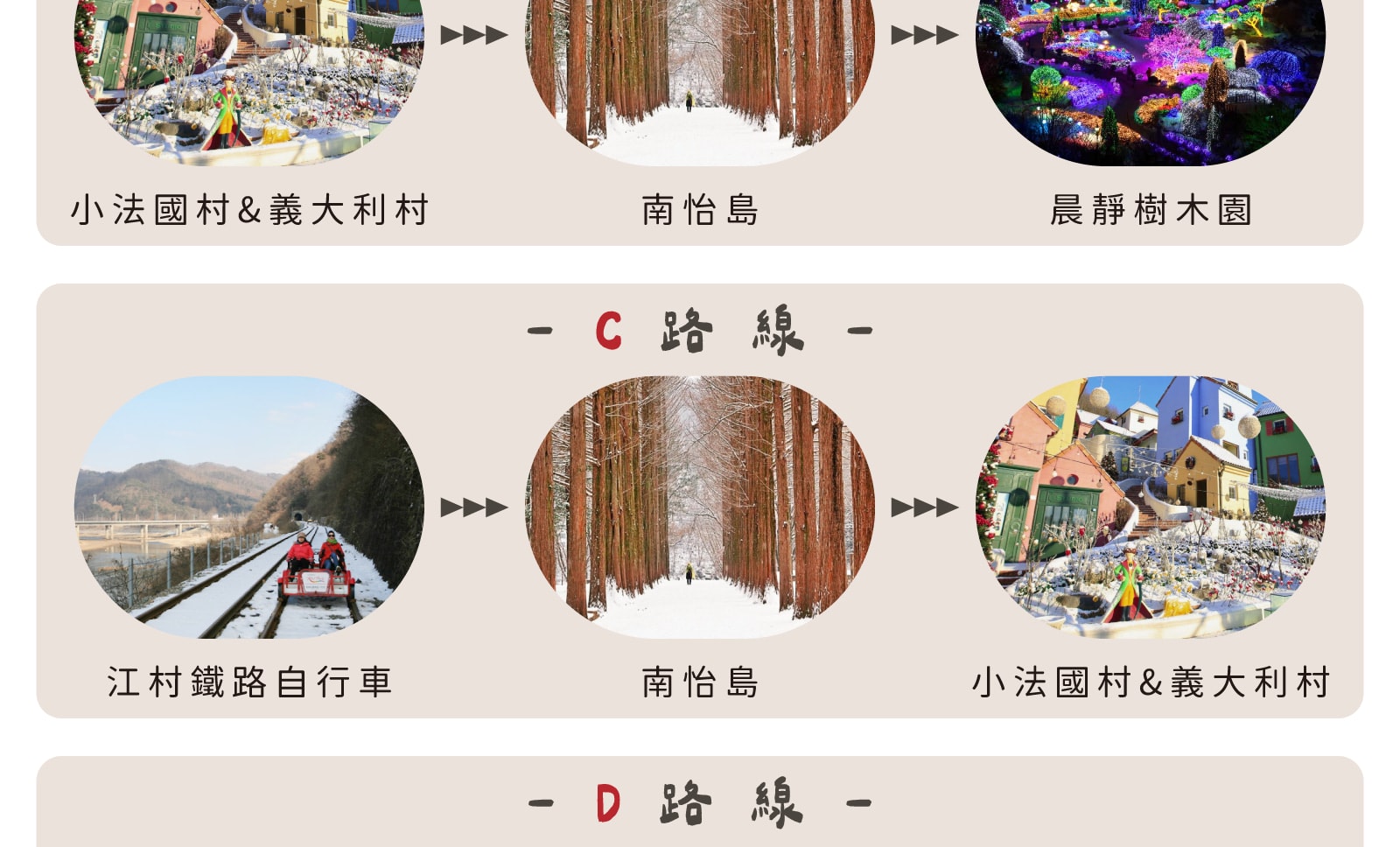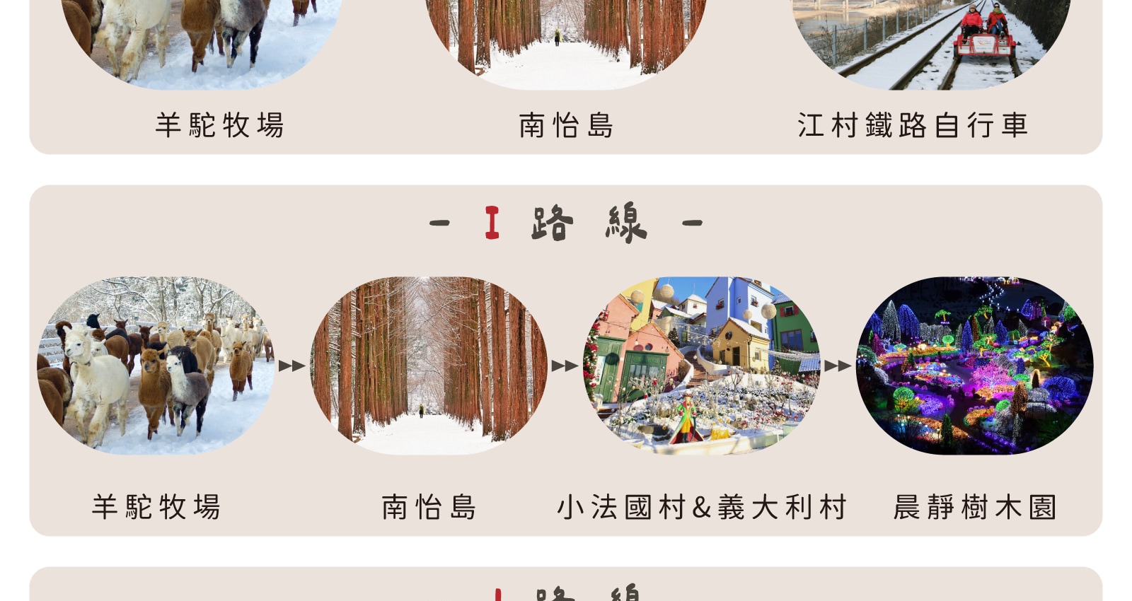 冬季B) 魚飛溪谷冰川+南怡島+小法蘭西村&義大利村+燈光節
