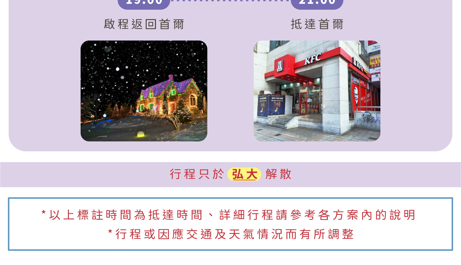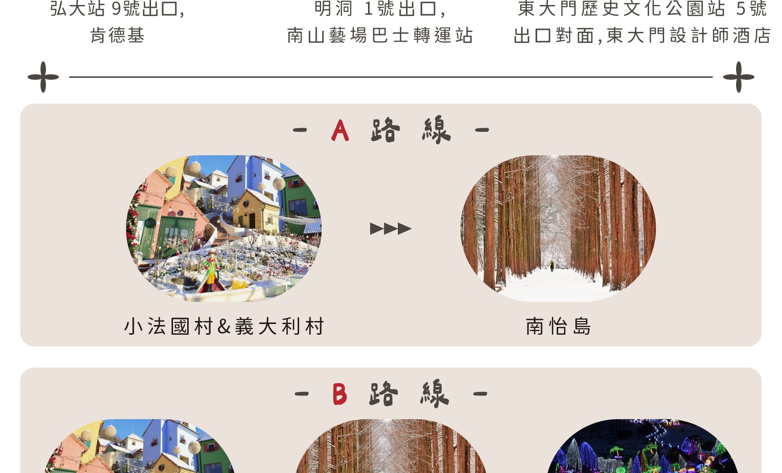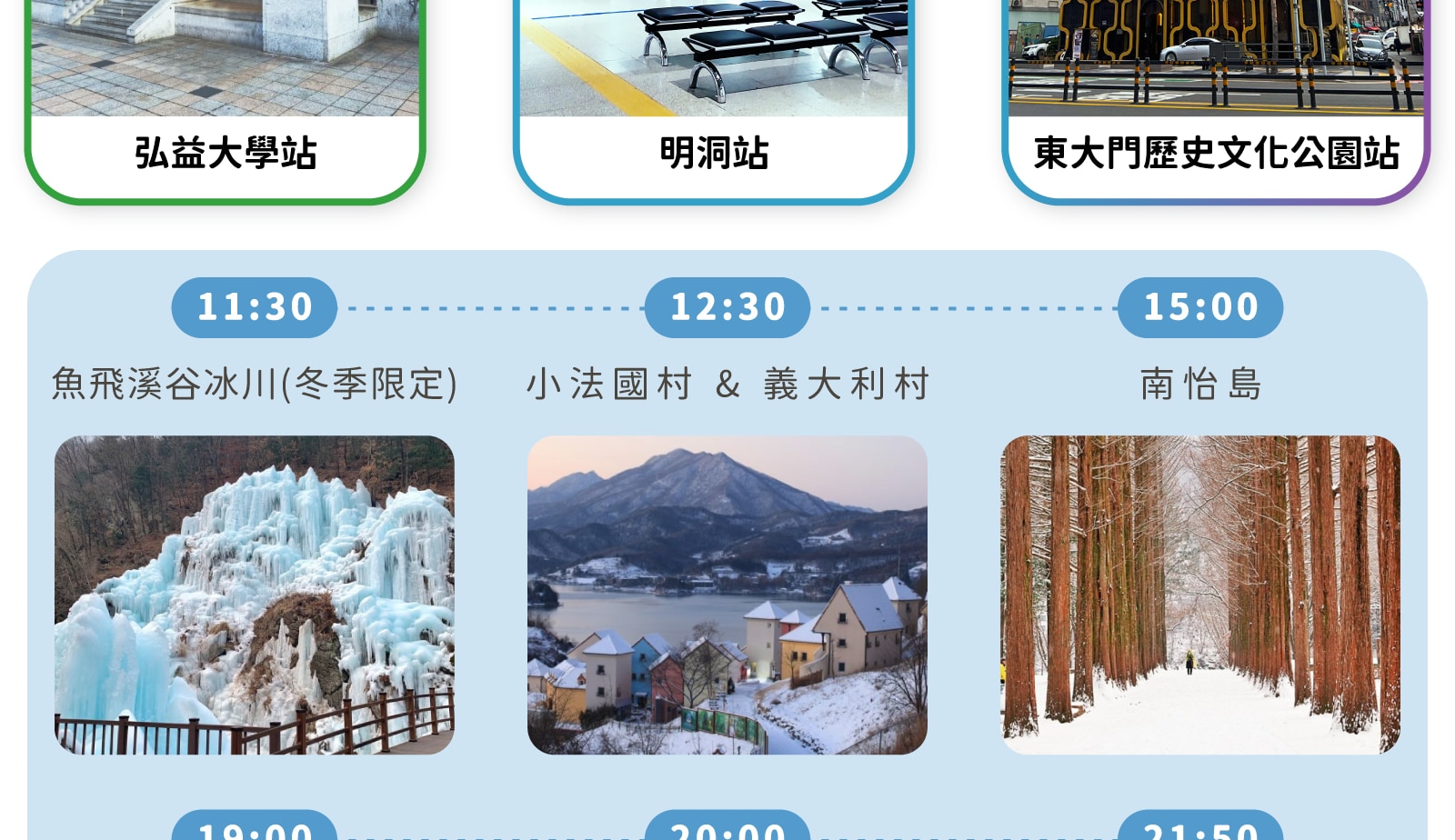 冬季B) 魚飛溪谷冰川+南怡島+小法蘭西村&義大利村+燈光節