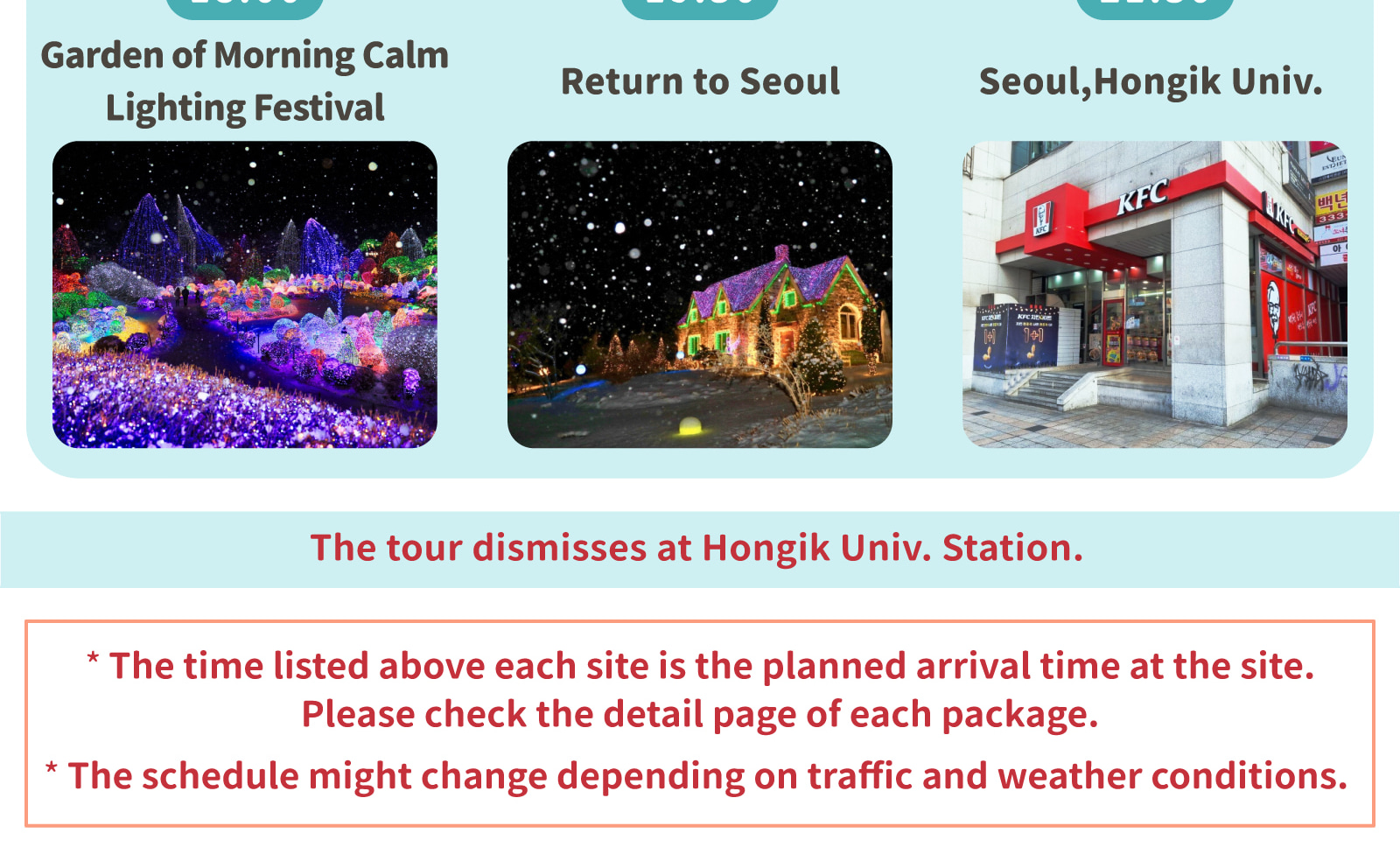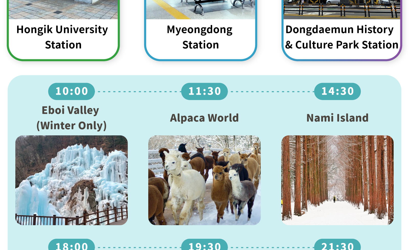 - 輕鬆出行——我們提供從首爾出發的舒適往返巴士服務,讓您無憂無慮。放鬆身心,在一次無縫銜接的旅程中體驗韓國必遊景點!