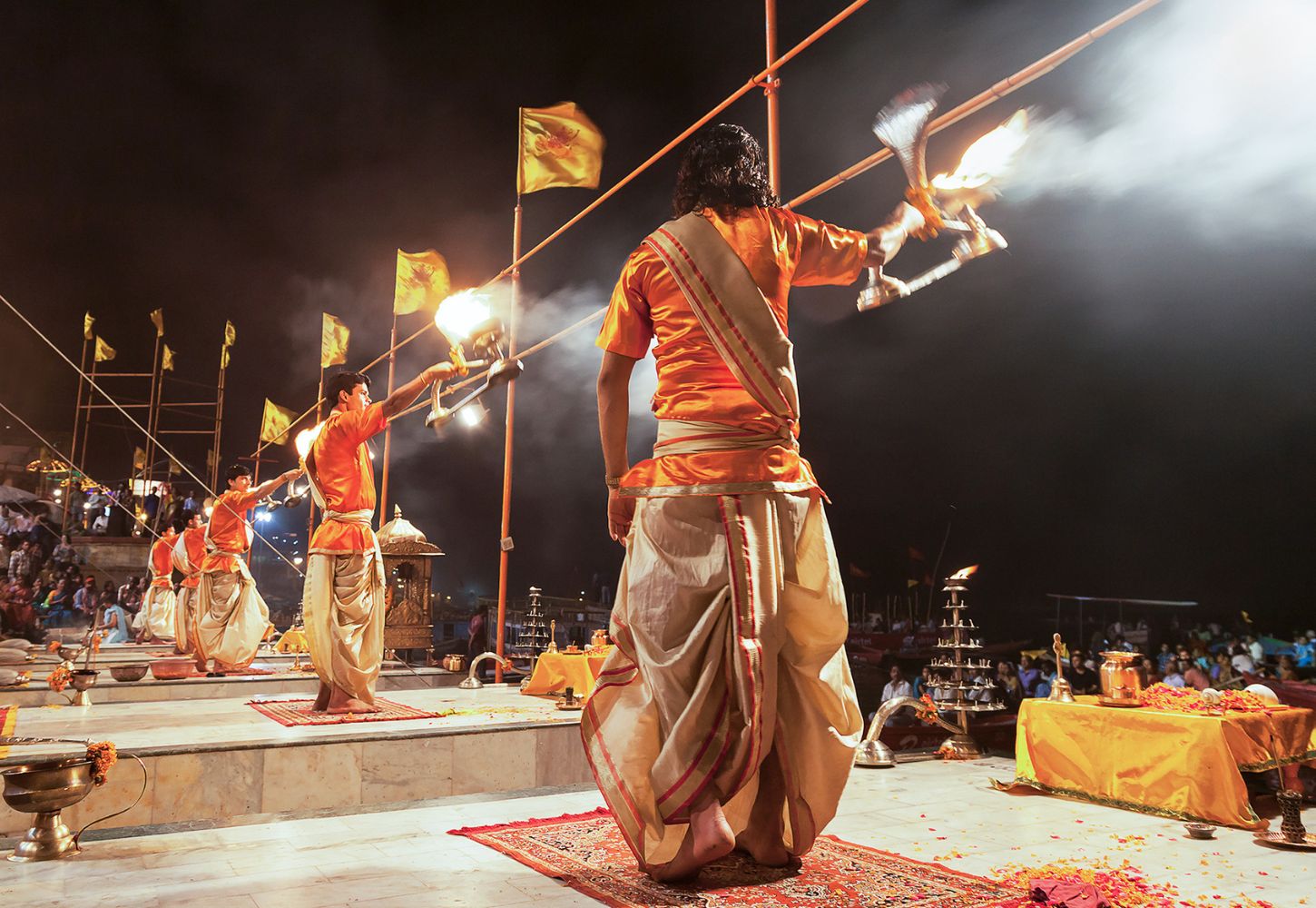 達薩斯瓦梅德河壇 (Dasaswamedh Ghat):下午 5:00 返回恆河,參觀火葬場,然後返回達薩斯瓦梅德河壇,參加迷人的晚間恆河祈禱儀式 (Ganga Aarti)。
