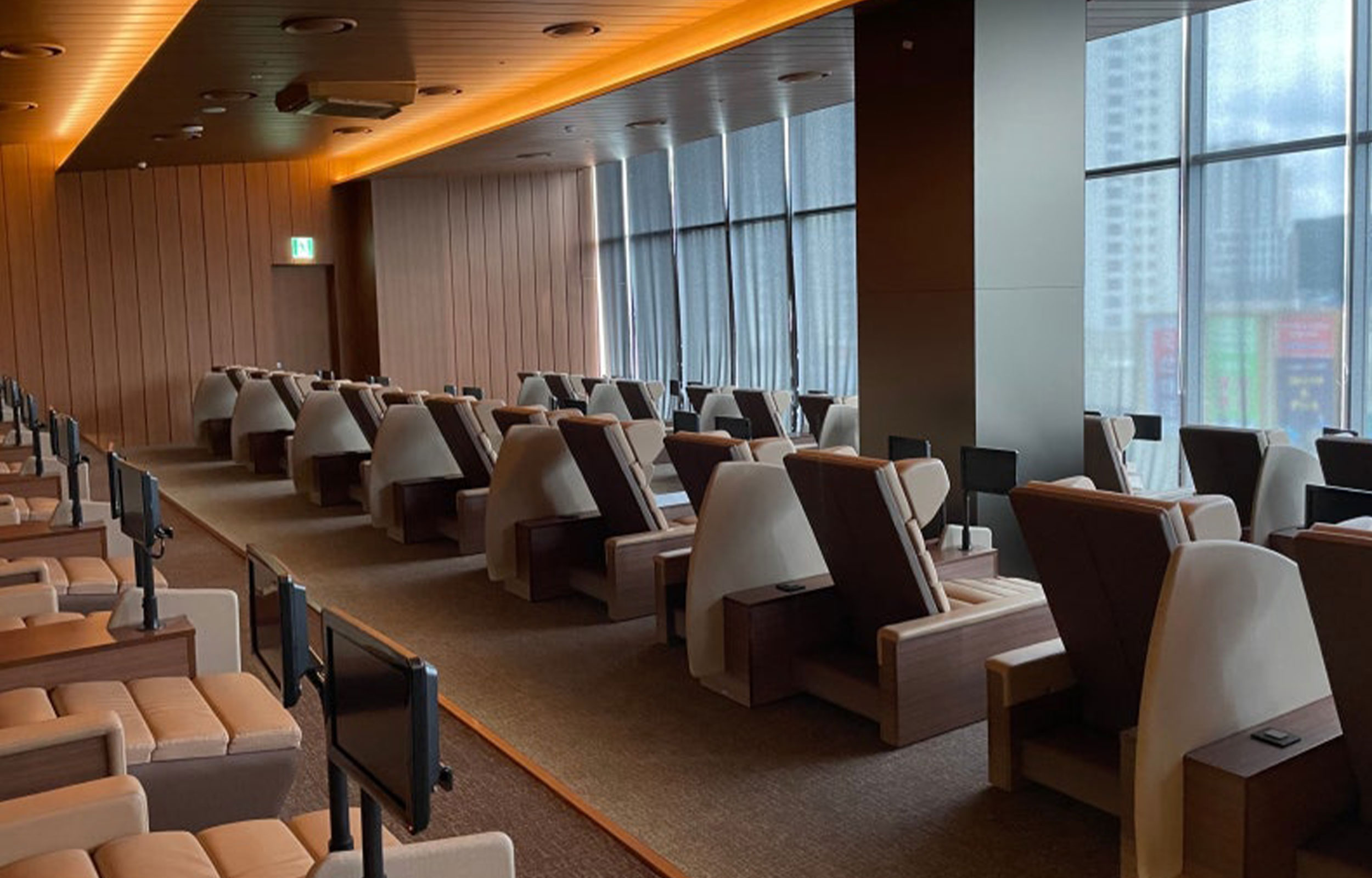 在僅限成人使用的放鬆室內,您可以在每個座位上放置靠墊,透過大窗戶欣賞戲劇或電影,放鬆身心。
