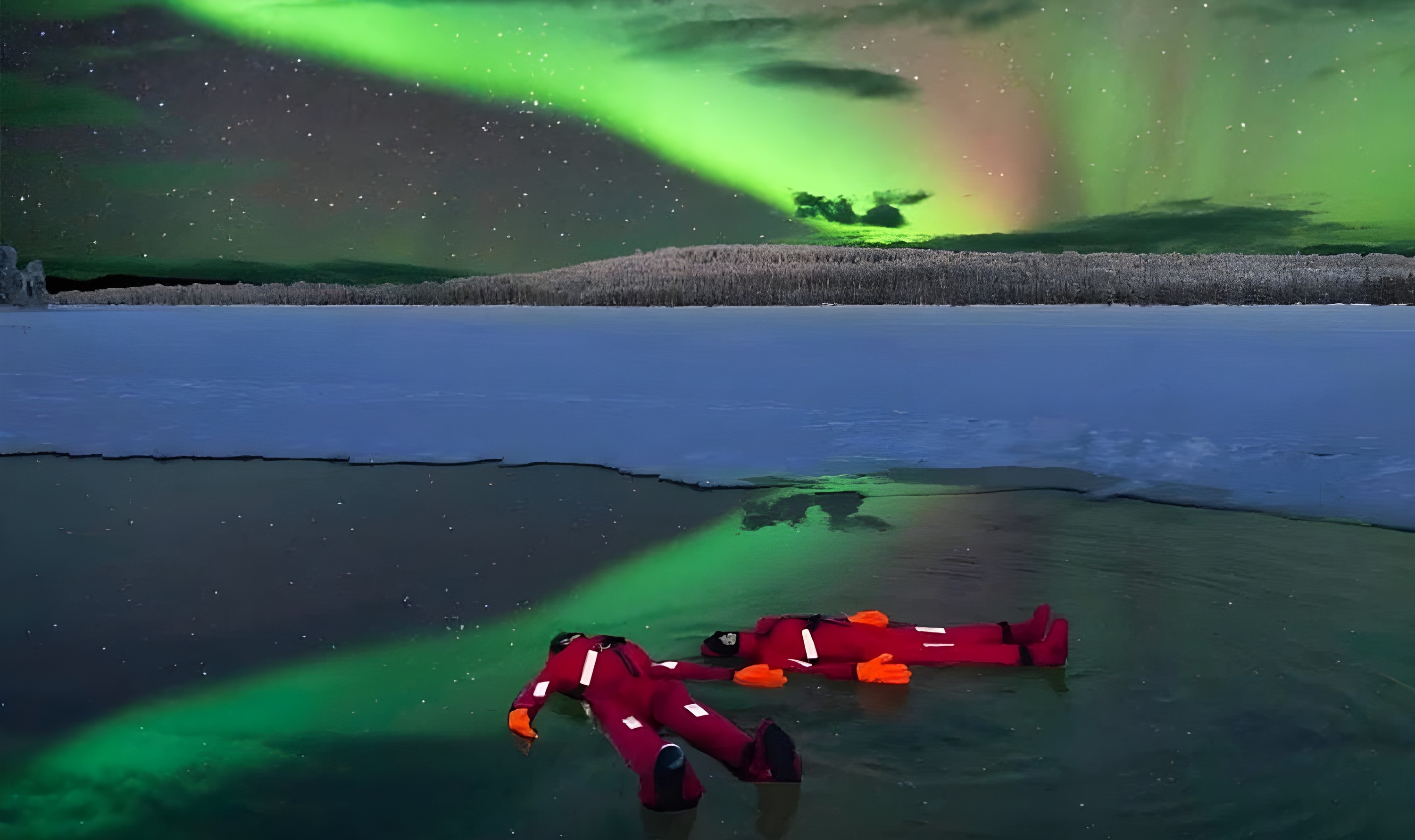 前往距離城市20公里以外的地方,遠離光汙染,來到一個寧靜的冰凍湖泊,周圍環繞著令人歎為觀止的自然美景——這裡是欣賞天體奇觀的完美場所。您將身著溫暖的防水救生服,優雅地漂浮,希望北極光能照亮天空。
