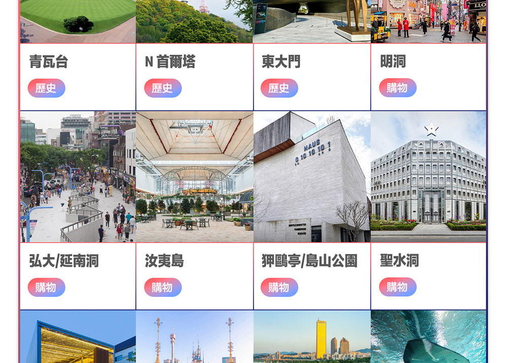 - 僅限首爾市區內的景點。