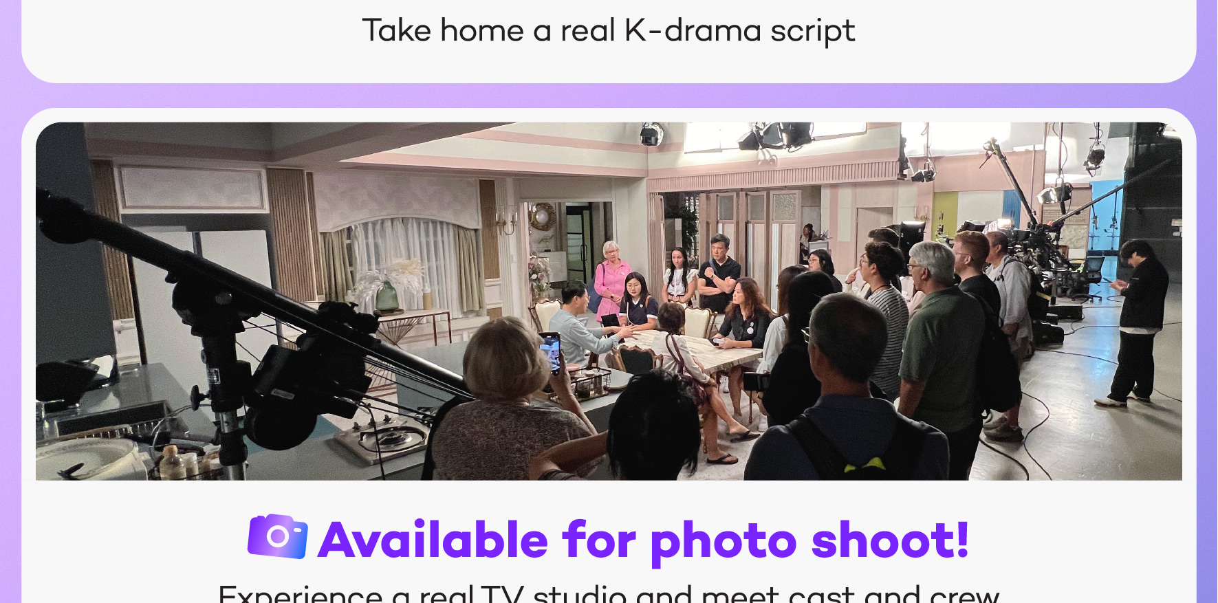 B: VIP 通行證:戲劇工作室之旅 + 現場韓劇排練參觀(截至五月)