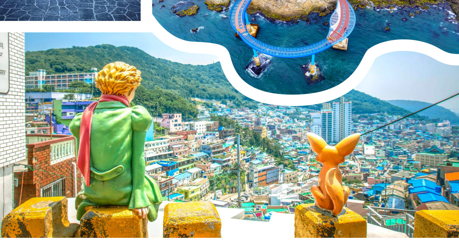 探索韓國的“馬丘比丘”——甘川文化村,這是一個山坡上的迷宮,由色彩繽紛的房屋、壁畫和古怪的藝術裝置組成。