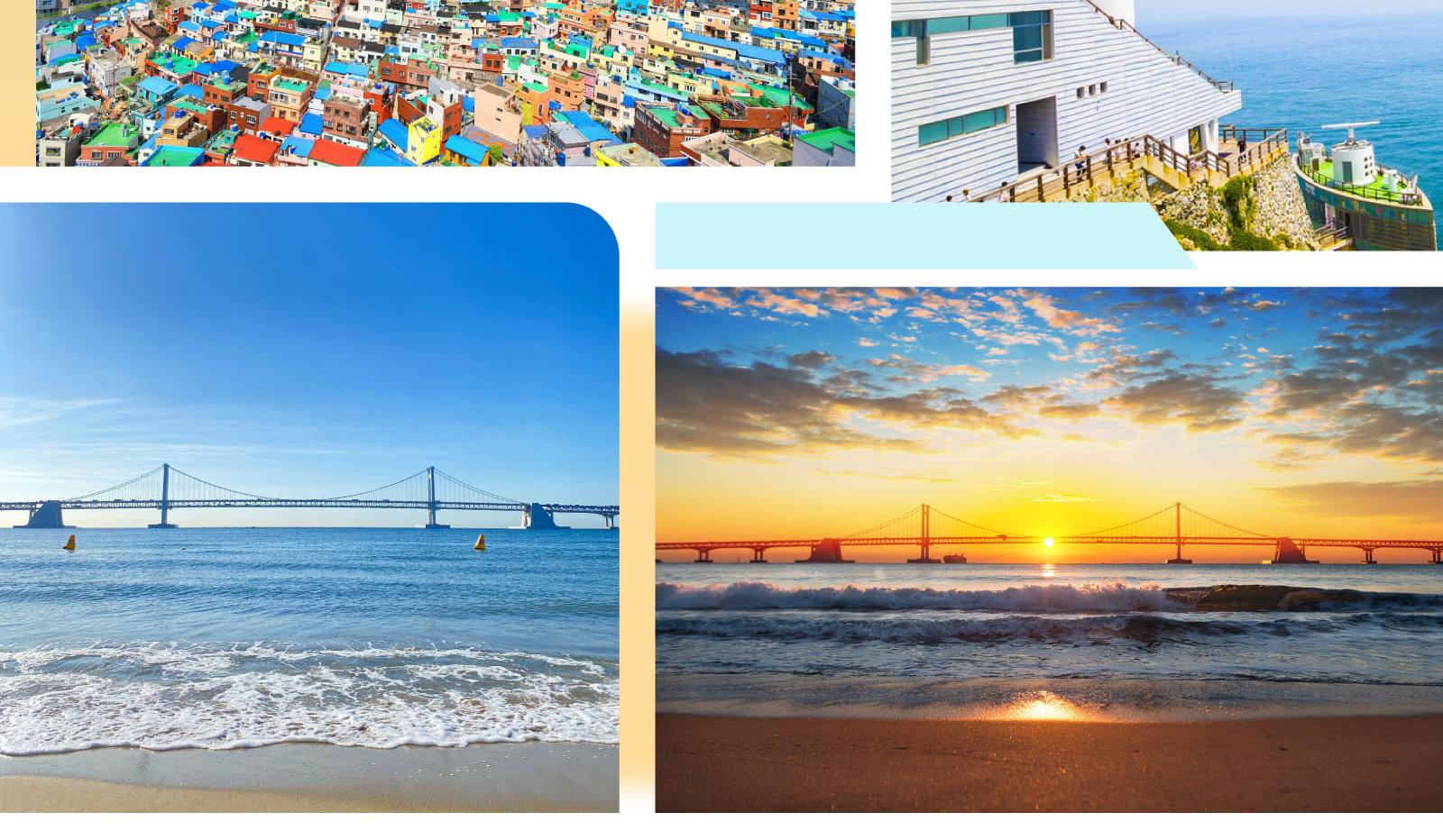 - 🌅 廣安裡海灘(Gwangalli Beach)– 放鬆身心,欣賞標誌性的廣安大橋(Gwangan Bridge)的景色