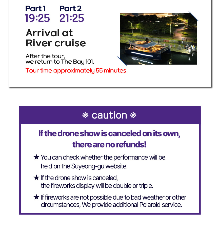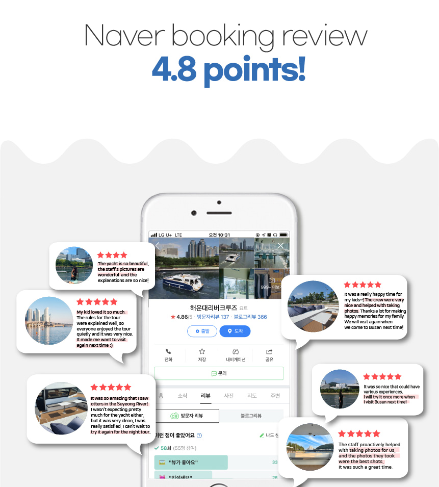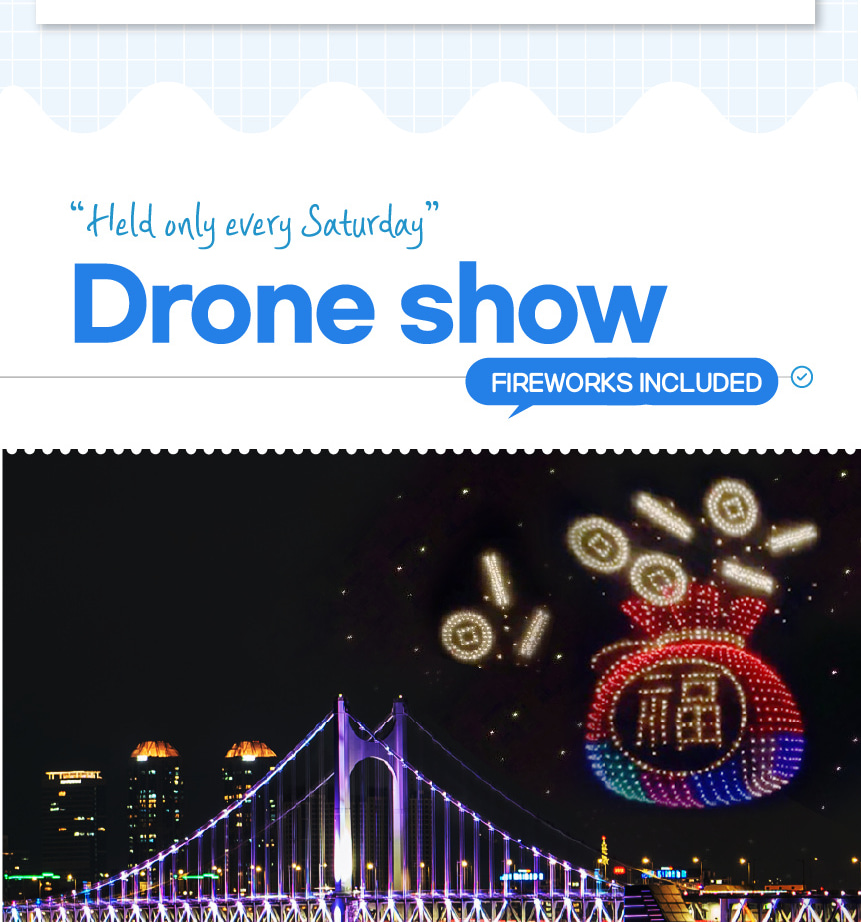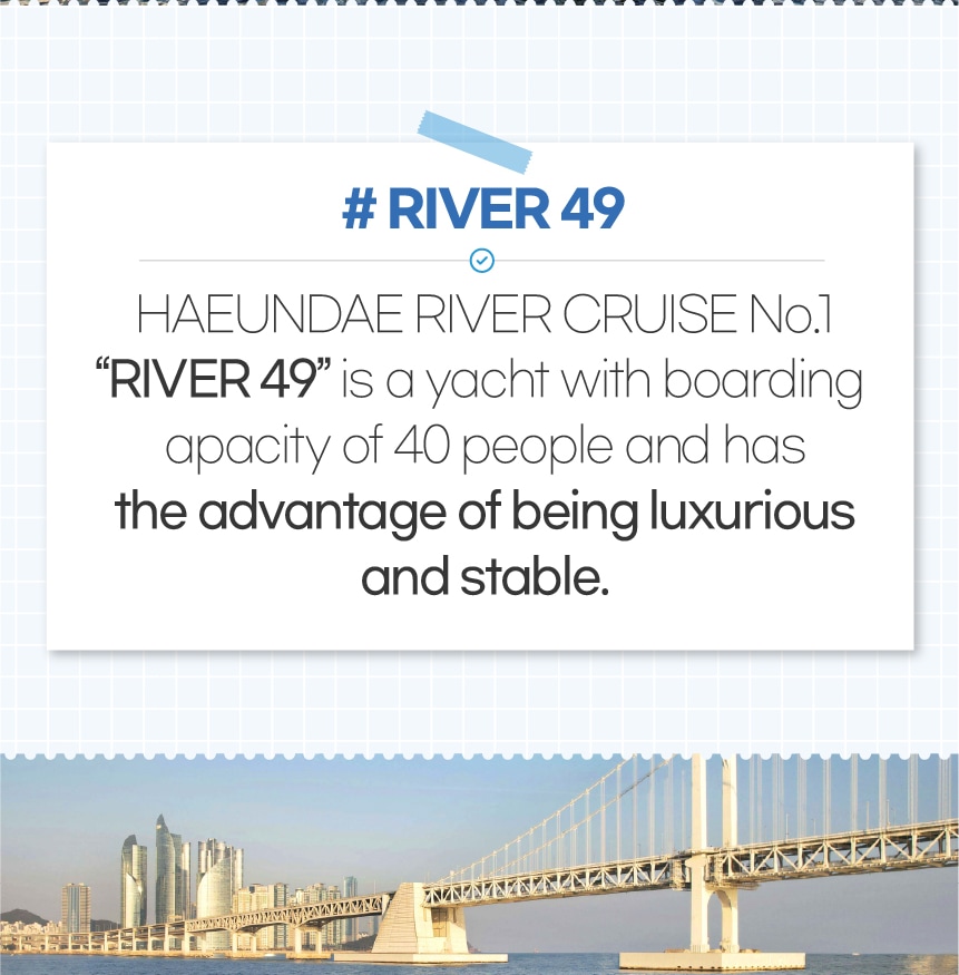 - 從釜山海雲臺Centum City的Suyeonggang River出發,途經水營橋和家庭橋等橋樑,到達廣安大橋前,與廣安裡海灘一起享受一小時的遊覽。