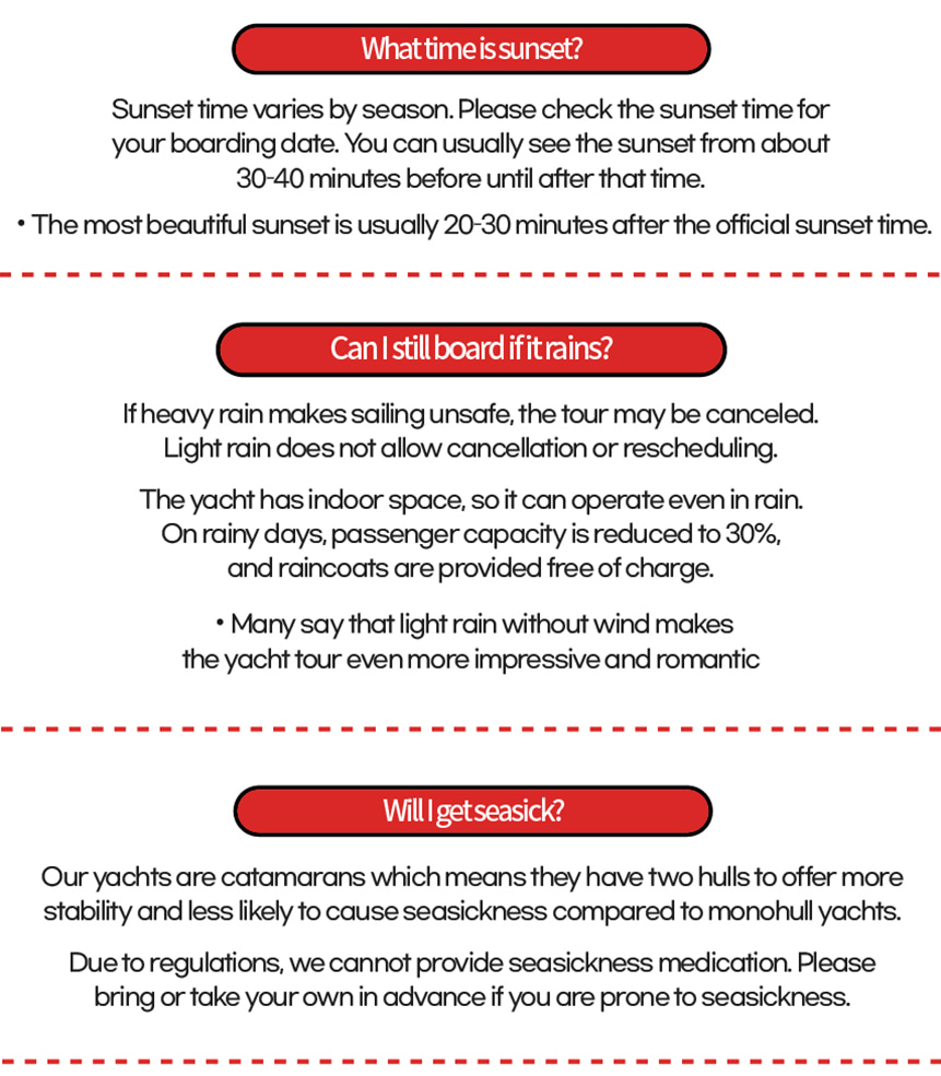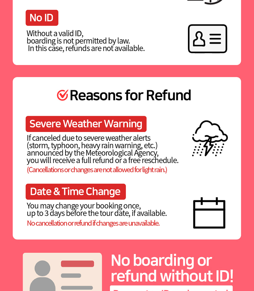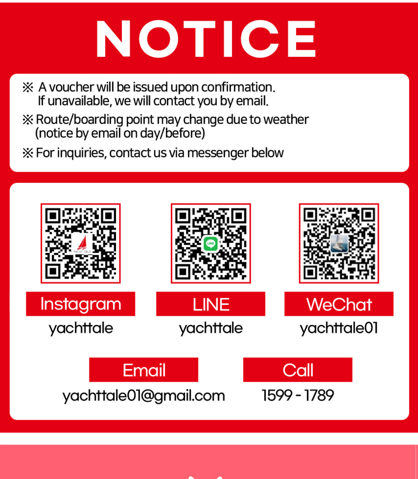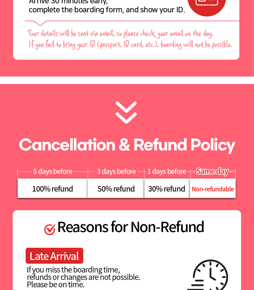 由於不可避免的情況(天氣、安全檢查等),請務必在參加日期查看預訂詳情和通知郵件。