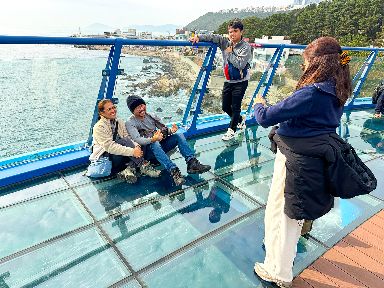 多里展望臺(青沙浦天空步道) 一條橫跨海洋的玻璃地板走道,讓您驚險刺激地欣賞腳下海浪拍打的壯麗景色。