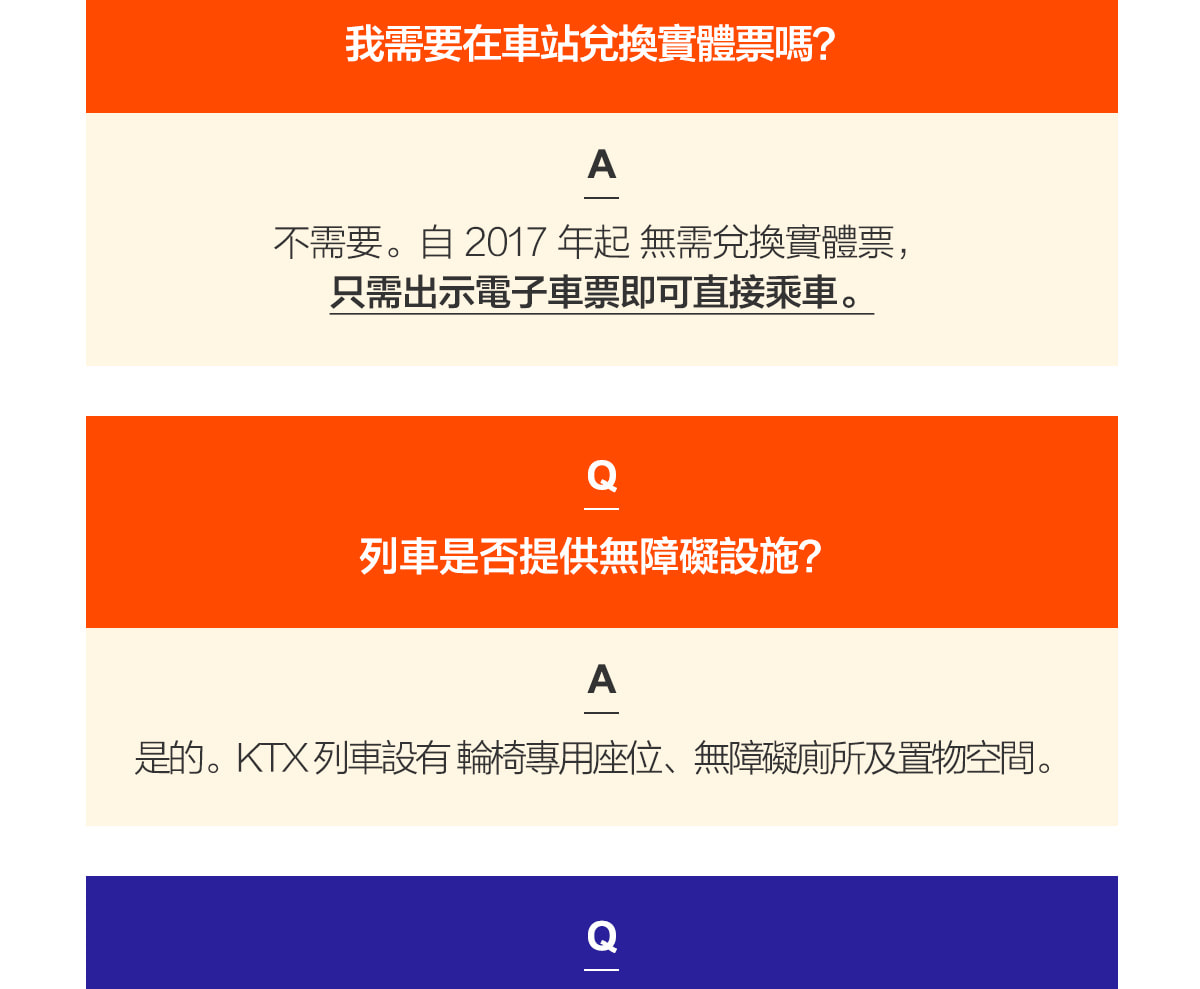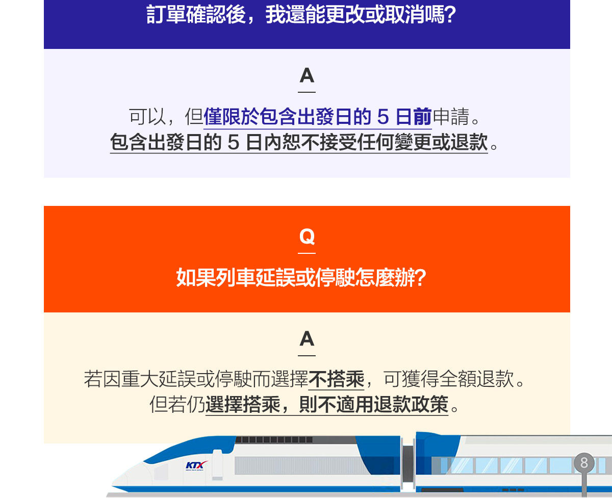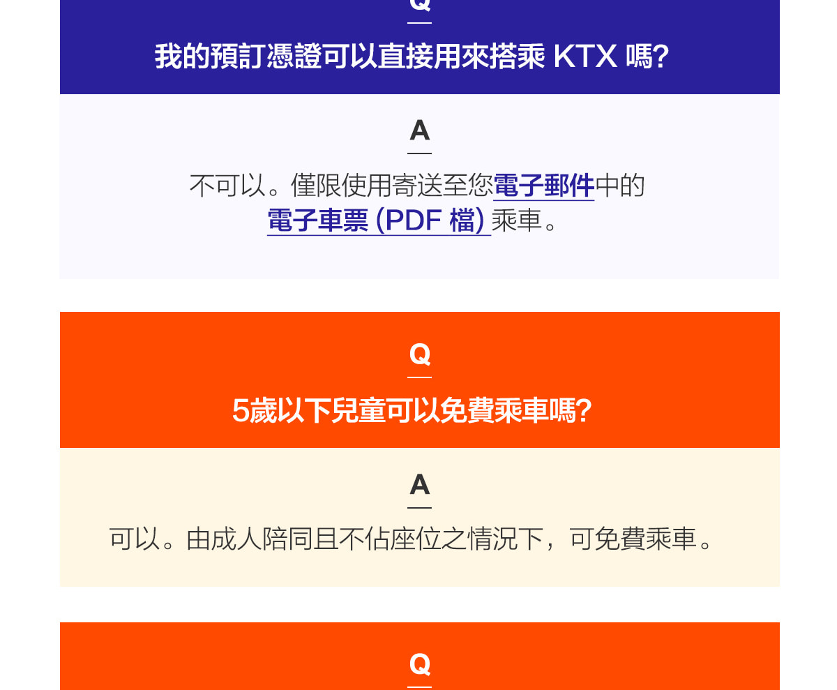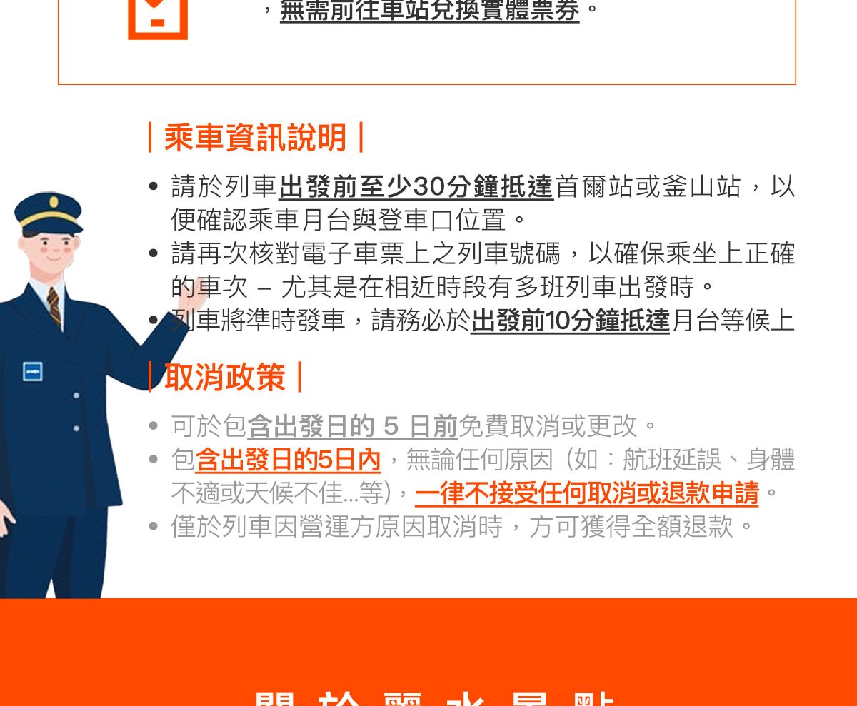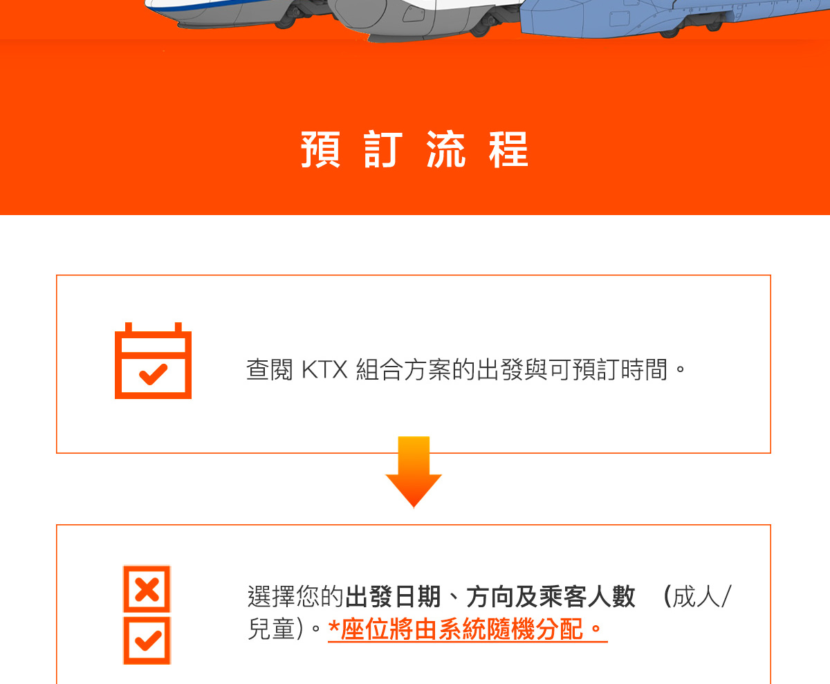- 乘坐任何KTX列車時,無需出示電子憑證或車票。您可以直接登上預訂的列車。