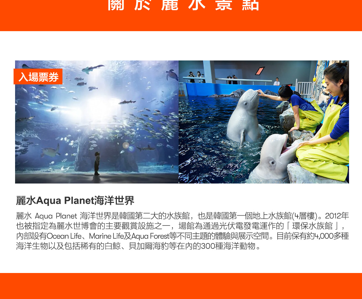 - 靈活的組合選擇:從各種超值方案中選擇,包括麗水和首爾熱門景點的門票