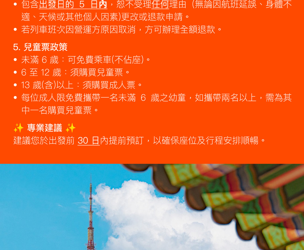 - 此優惠不適用於韓國護照持有者