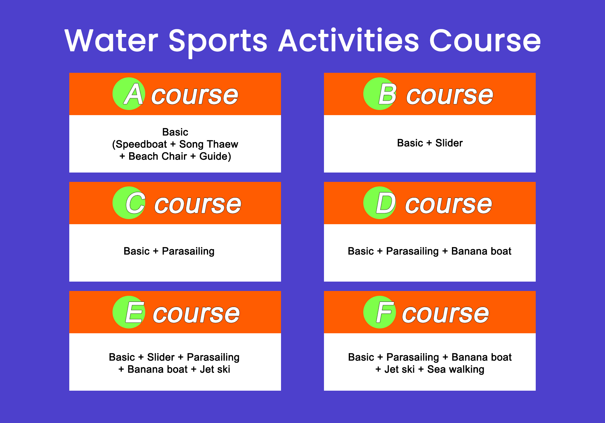 - 在格蘭島,您可以選擇方案中包含的其他水上活動,或現場以現金支付體驗