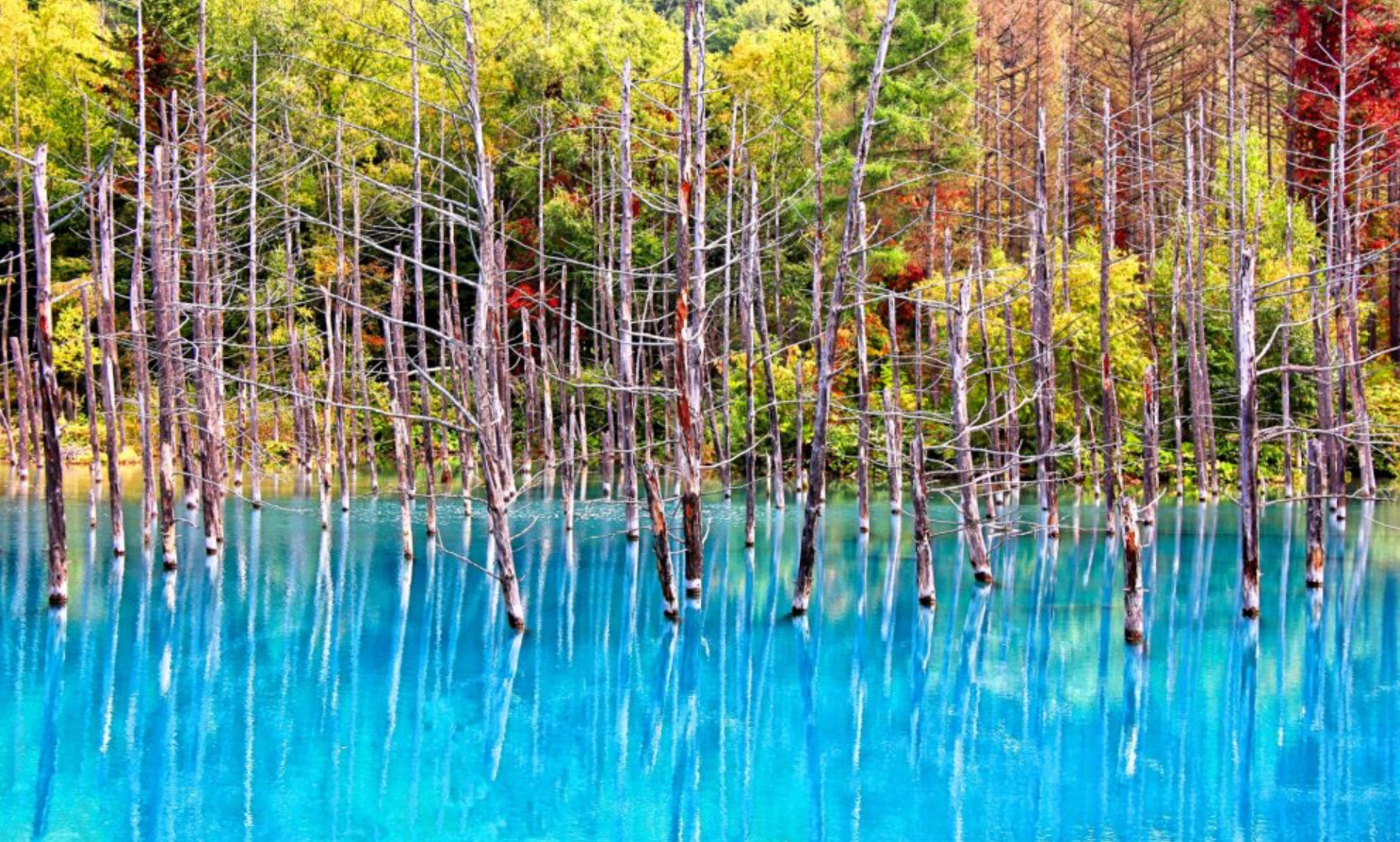 漫步於兩個自然美景地:藍色池塘“青池”和色彩繽紛的花園“富田農場”!在池塘中觀賞白樺樹,水面折射著光線。富田農場的薰衣草花期在7月至8月之間。