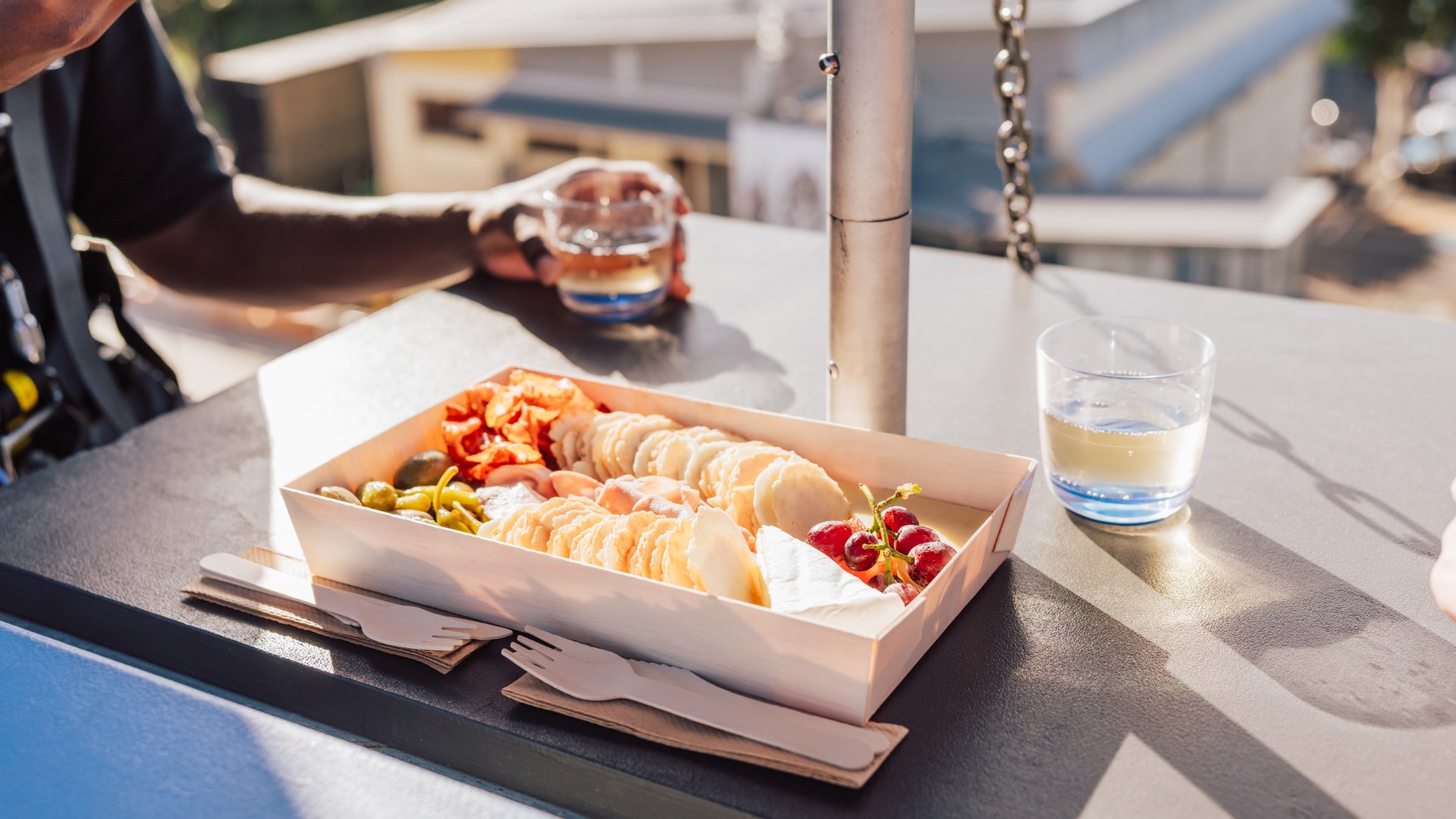 在離地 17 公尺的高空,享用美味的熟食拼盤。