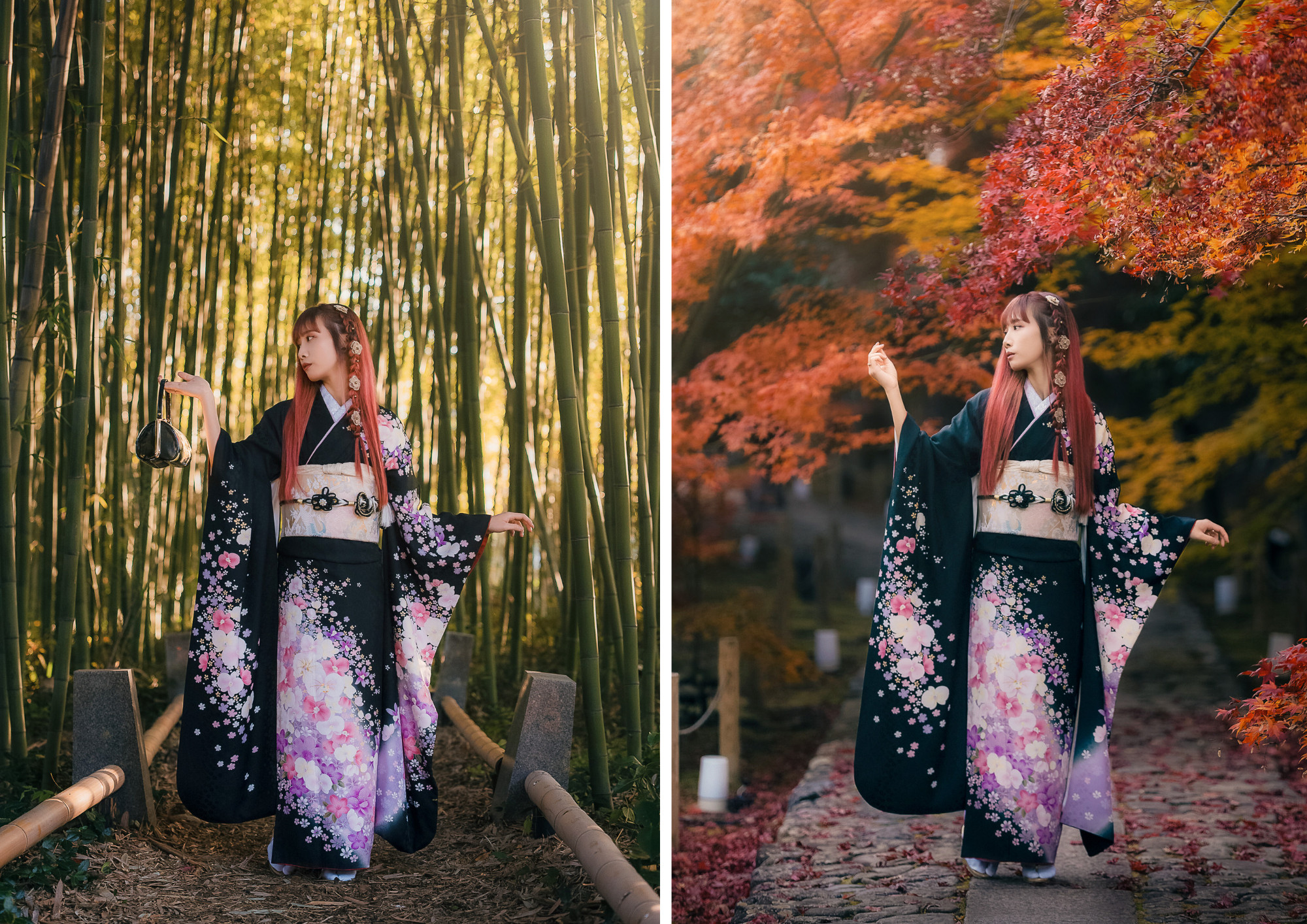 春天賞櫻、夏天新綠、秋天紅葉、冬天雪景。穿著和服漫步於清水寺、伏見稻荷、嵐山、祇園,眼前的景色彷彿電影或繪卷中的一幕,照片將成為一生中永不褪色的回憶。