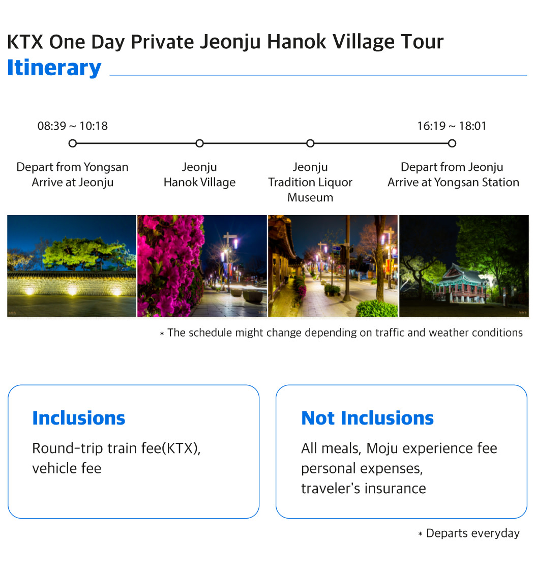 參加此行程,您無需專門的導遊即可在全州韓屋村自由活動,並獲得相關旅遊景點或遊客資訊中心提供的免費講解服務。