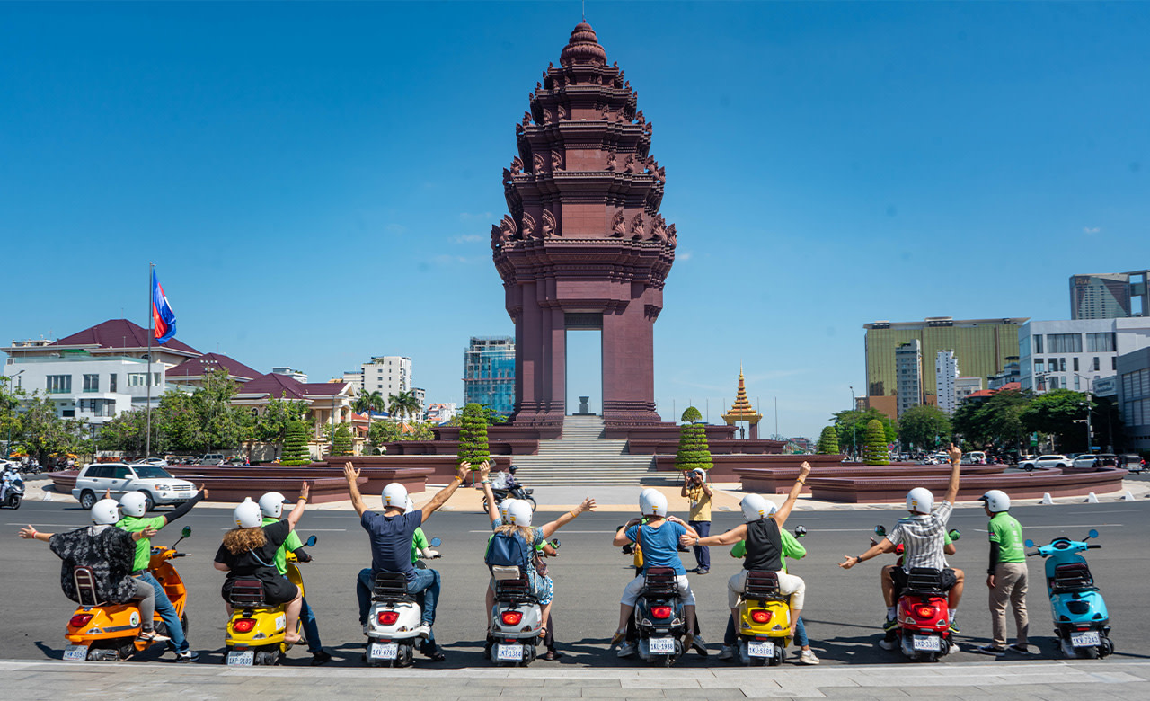 參加Vespa之旅,探索金邊市區,沉浸在柬埔寨首都充滿活力的脈搏中。本次短途旅行提供了一個無與倫比的機會,讓您去探索這座城市最具標誌性的地標和隱藏的瑰寶,將觀光和文化沉浸融為一體。在經驗豐富的導遊的帶領下,您將穿梭於迷人的后街和小巷,揭開這座城市豐富的歷史和多元的文化遺產。從金碧輝煌的王宮和寧靜美麗的銀塔,到發人深省的國立博物館和吐斯廉屠殺博物館的展覽,本次旅行一定會給您留下深刻的印象。當您坐在Vespa的後座穿梭於熙熙攘攘的街道時,您將更深入地瞭解金邊的過去和現在。