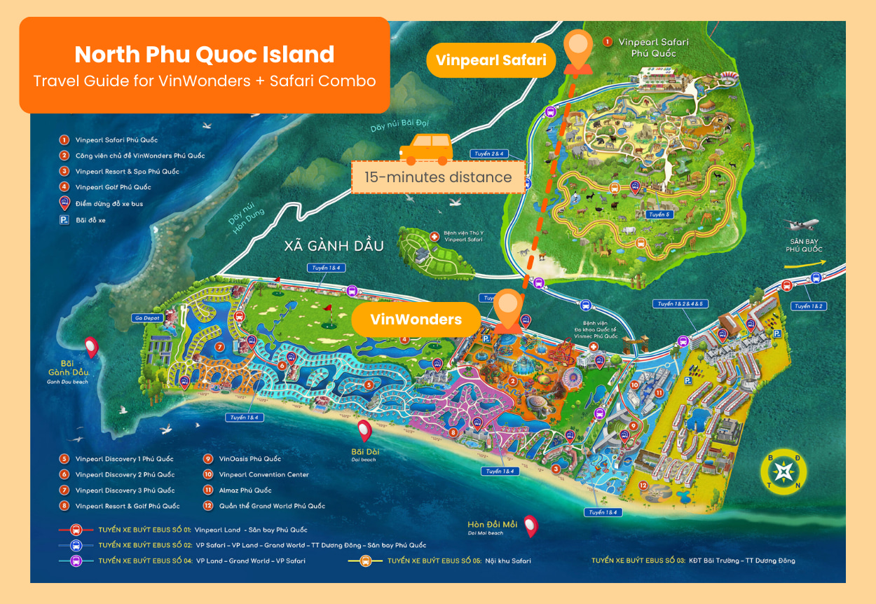 - 園區提供接駁巴士您可以參考Vinpearl 官方網站上的工作時刻表和巴士站