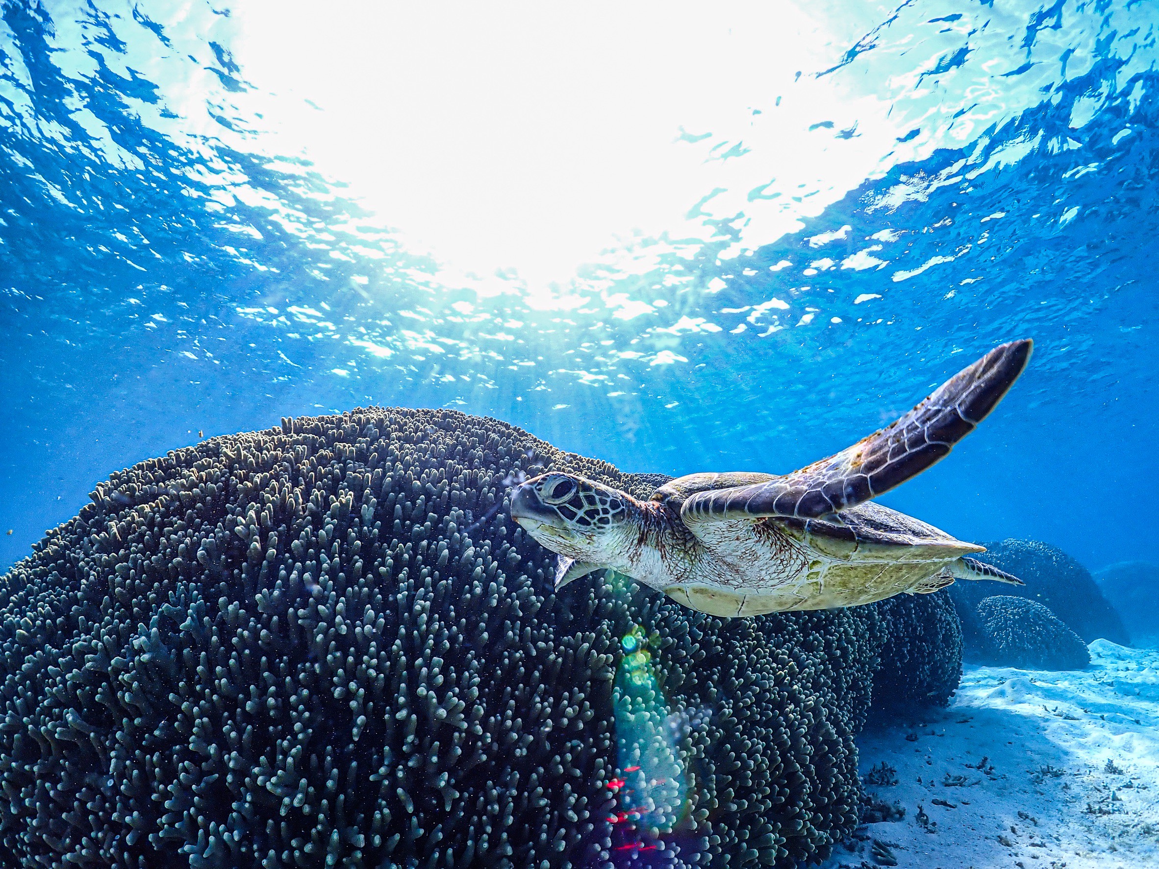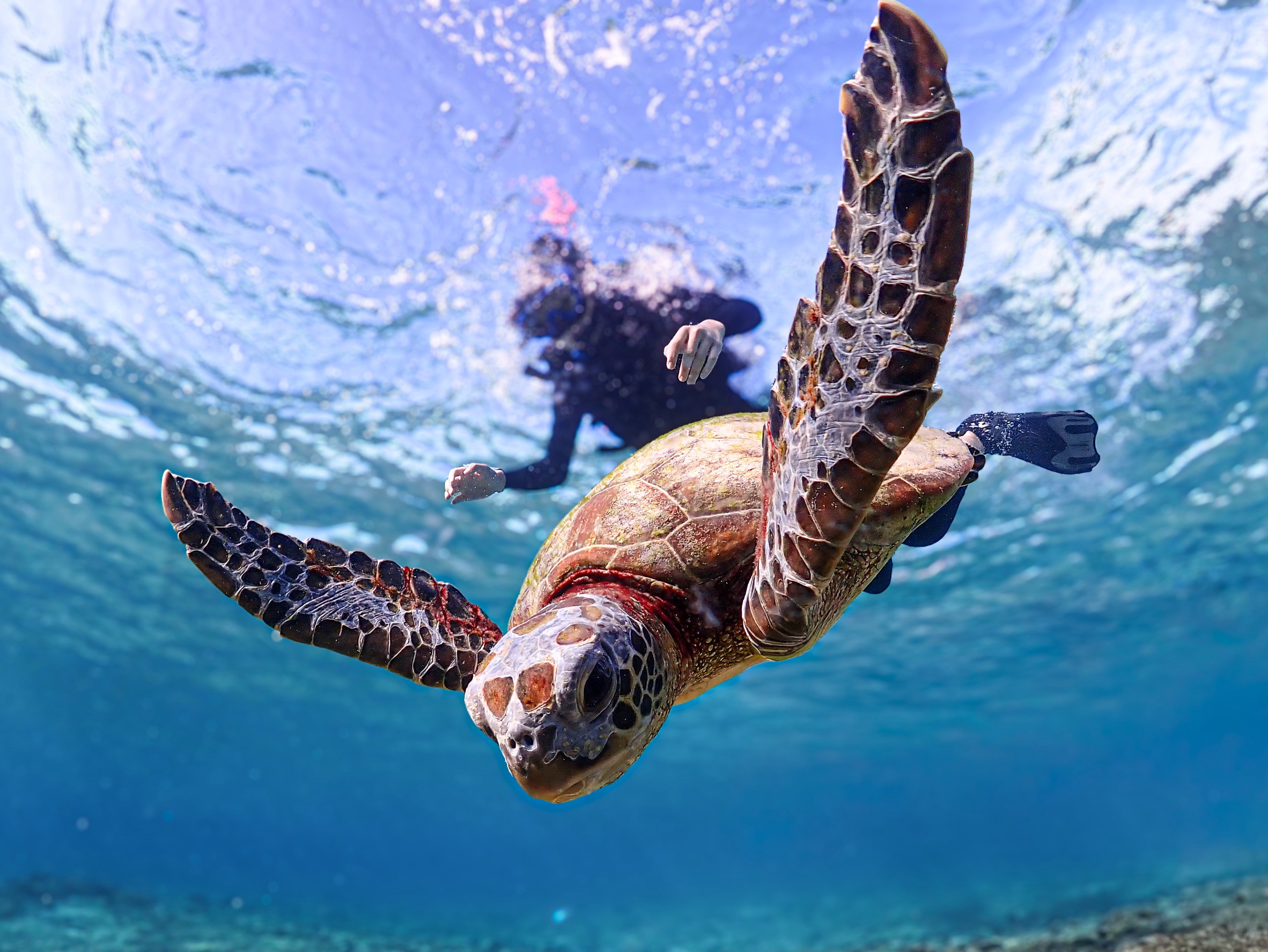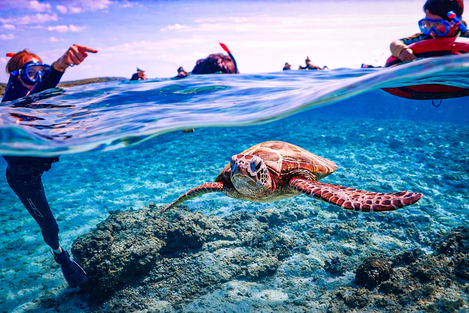 經驗豐富的資深導遊熟知當日的海況和海龜的活動規律,因此我們承諾您有很高的概率與海龜相遇。在清澈透明的宮古島海水中,盡情享受與在您眼前優雅游弋的海龜共度的感動時刻。