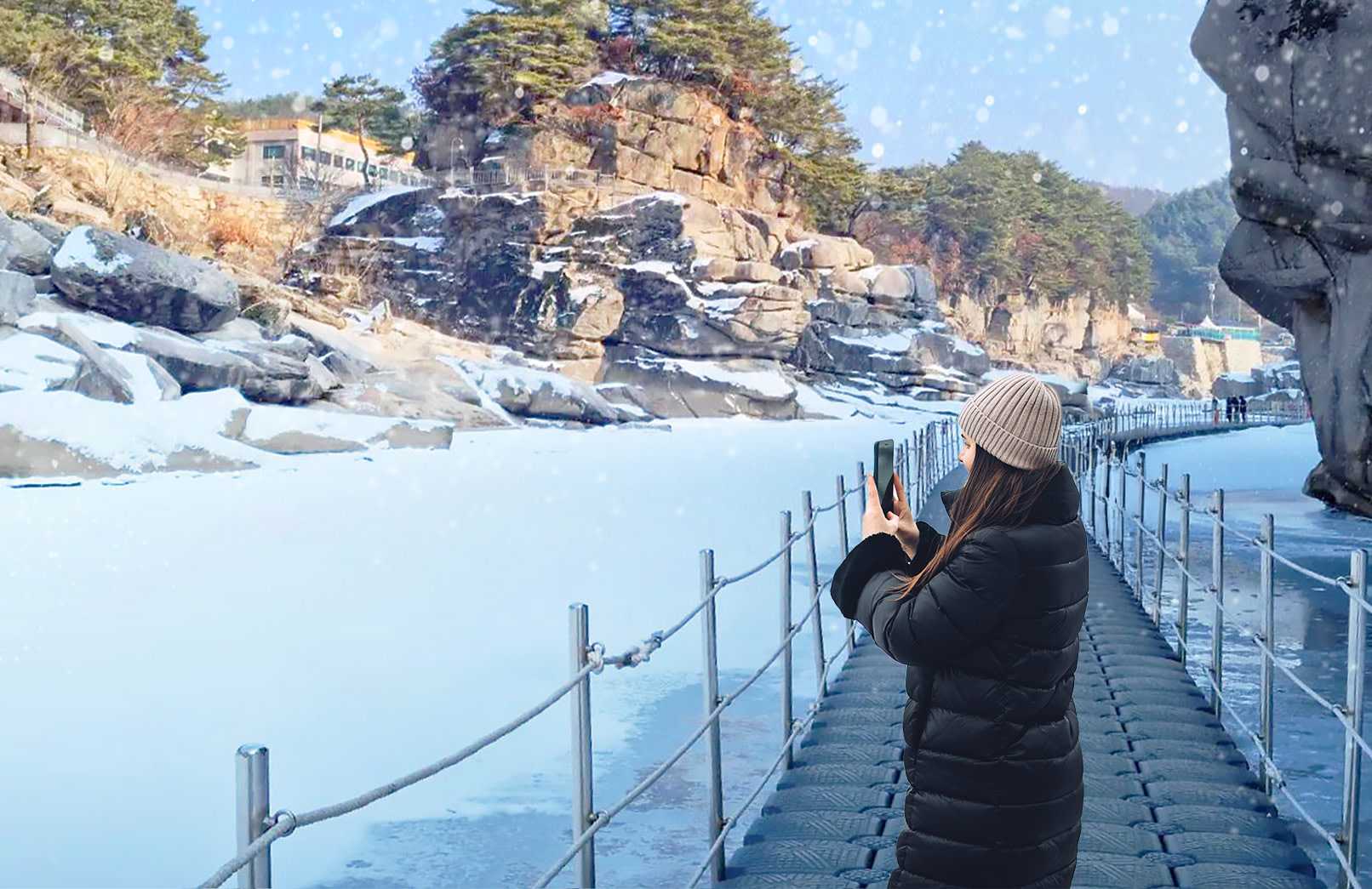 冬季的孤石亭 (Goseokjeong) 是一處被冰雪覆蓋的靜謐山谷,在這裡,您能同時感受到大自然的雄渾力量與冬季的寧靜之美。