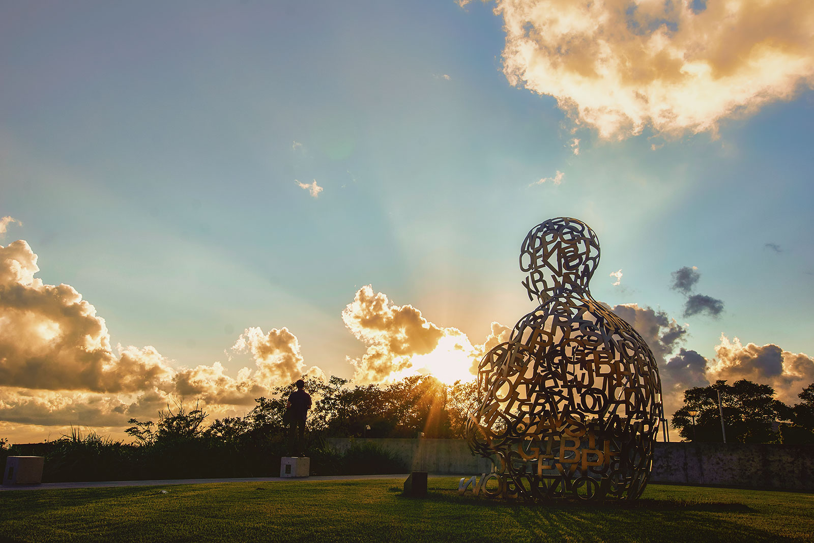 遊客可以在寬敞的雕塑花園中漫步。這裡展示了 Rotraut Klein-Moquay 的《吉塔娜》(一種表達人與自然和諧的舞蹈人物)和 Jaume Plensa 的《兒童靈魂》,遊客可以在裡面拍照或穿過它。