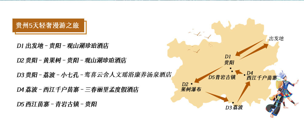 - D4:西江千戶苗寨體驗苗族非遺蠟染和賞萬家燈火,千與千尋同款夜景(198KM,約2小時30分鐘)