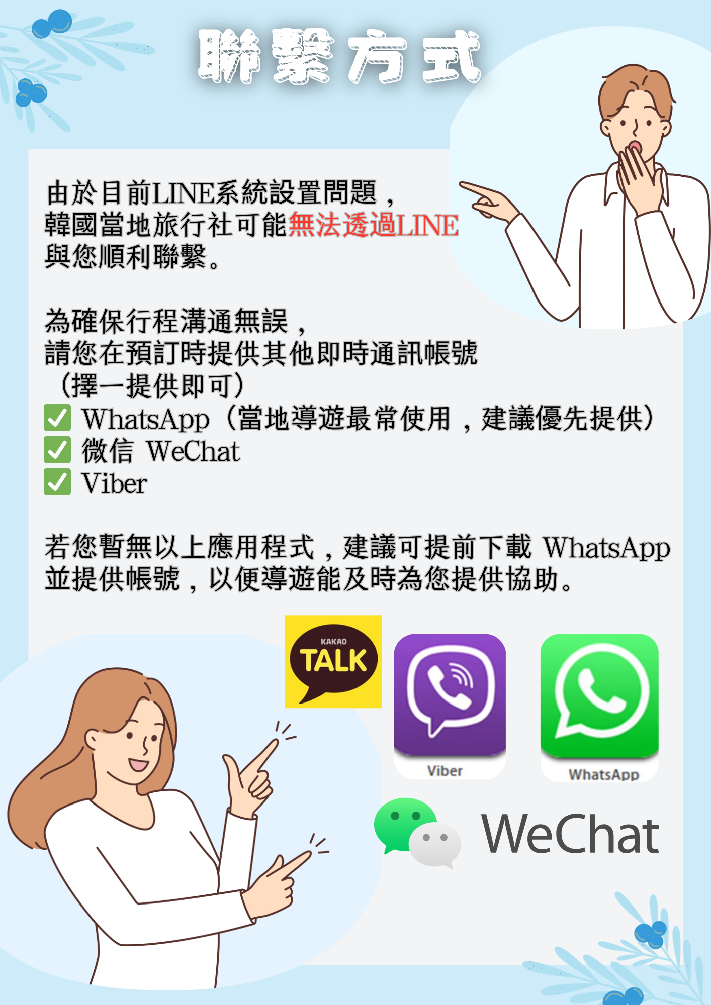 我們將主要通過WhatsApp或Viber與您聯繫。