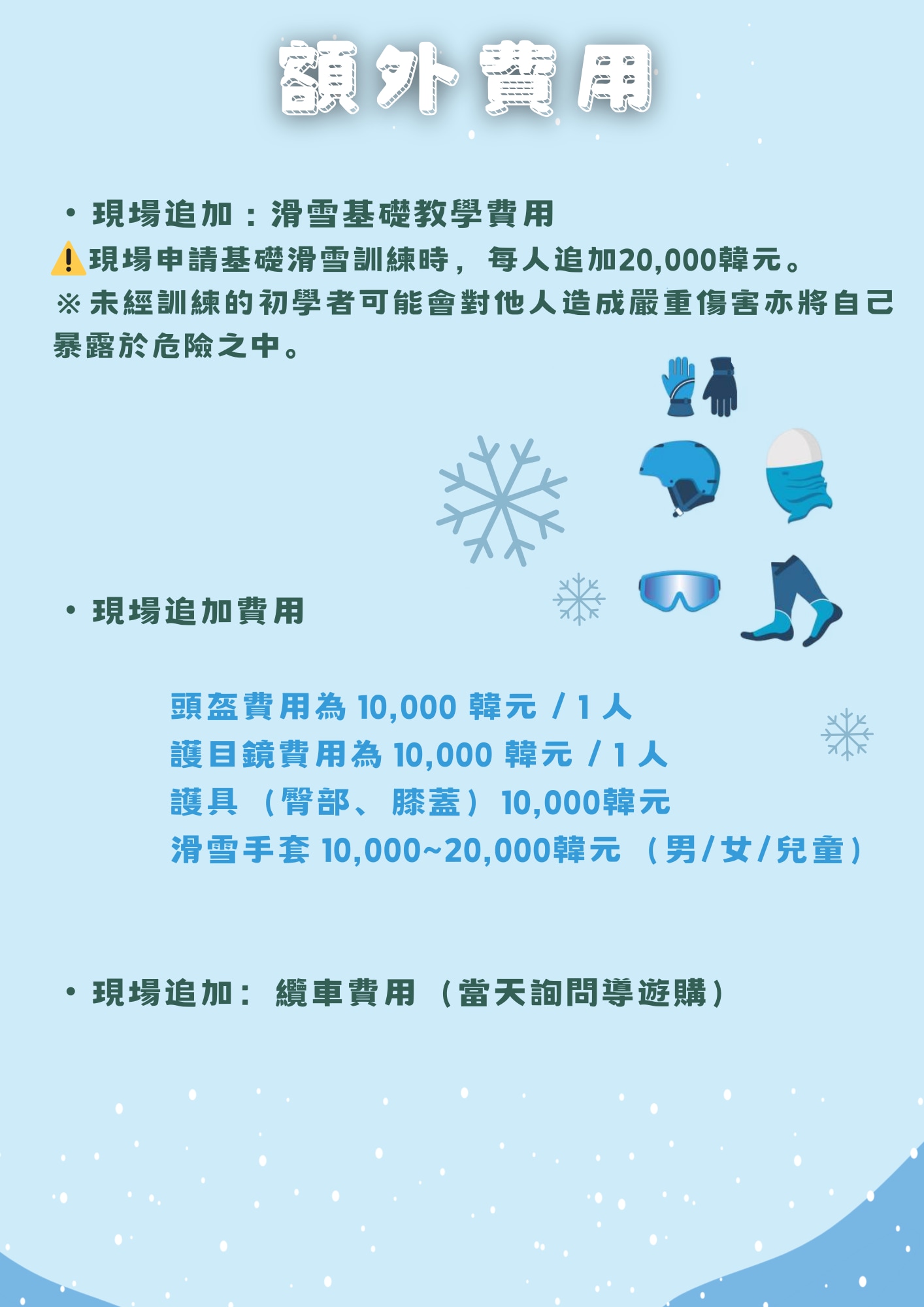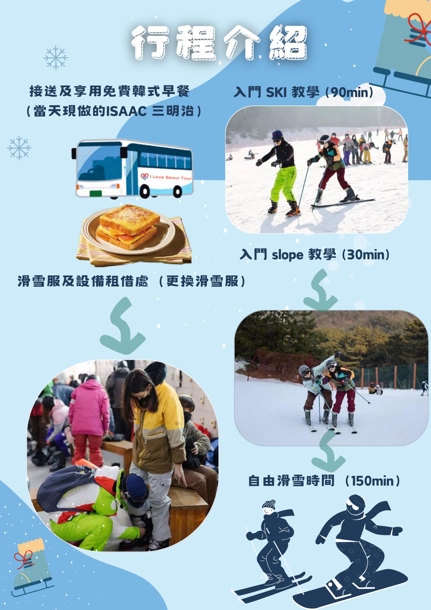- **無縫出行:**享受從首爾出發的無憂往返交通,讓您的滑雪之旅輕鬆便捷