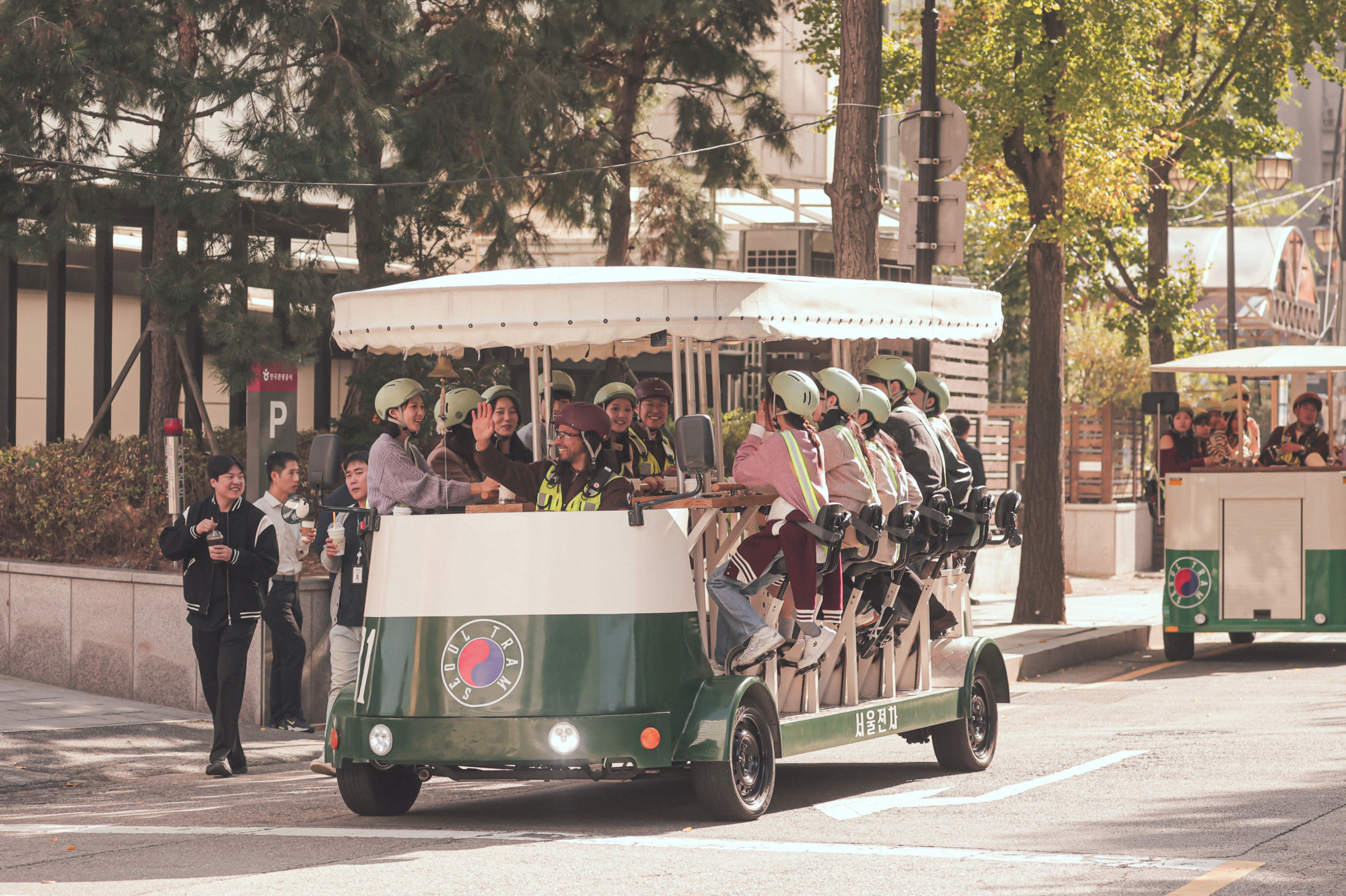 今年秋天,搭乘獨特的腳踏Seoul Tram,穿梭於Seoul (首爾) 的中心地帶。我們專為秋季設計的路線,將帶您飽覽這座城市的季節性魅力,從色彩繽紛的樹葉襯托出的雄偉景福宮 (Gyeongbokgung Palace),到充滿懷舊氣息的益善洞小巷。與普通的觀光巴士不同,Seoul Tram將觀光與互動相結合——遊客們一同踩踏前進,同時由專業導遊分享歷史和文化故事。沿途,您將下車短暫步行,探索隱藏的角落,捕捉秋天的色彩。無論是家庭、情侶還是充滿好奇心的旅客,這趟一小時的旅程都是您欣賞Seoul (首爾) 最浪漫季節之美和精神的絕佳機會。
