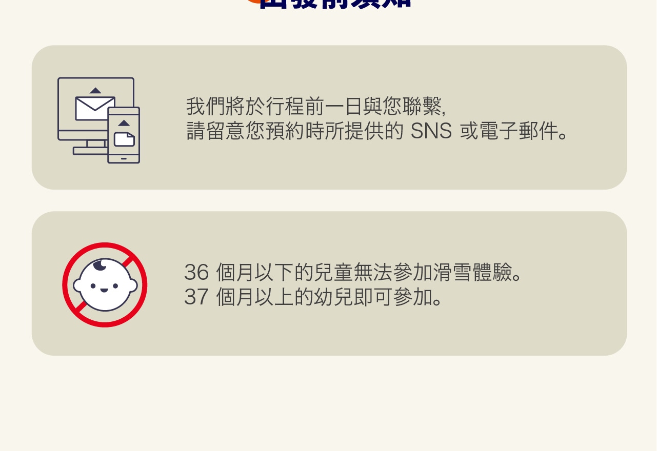 - 未滿3歲的兒童不得參加滑雪或滑雪板活動。