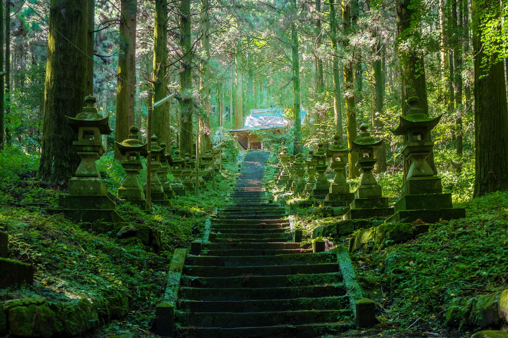 許多動漫迷特地前來造訪的地方,這裡被認為是《螢火之森》的取景靈感地之一。杉林、石階、石燈籠一路延伸,靜謐又帶著一點神秘感。