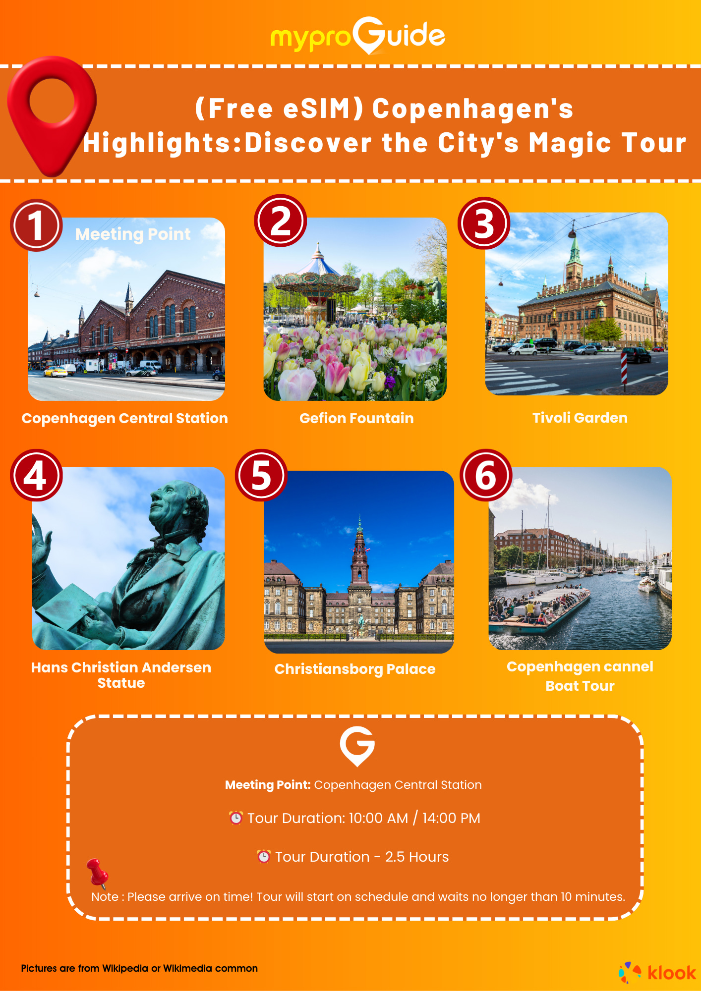 從中央車站出發,探索哥本哈根,走訪蒂沃利花園,並漫步於市政廳廣場,欣賞安徒生雕像。探索歷史悠久的克里斯蒂安堡宮,最後搭乘遊船,飽覽城市地標和水道的迷人景色,享受輕鬆愜意的旅程。沉浸式體驗哥本哈根的歷史、文化和充滿活力的氛圍。