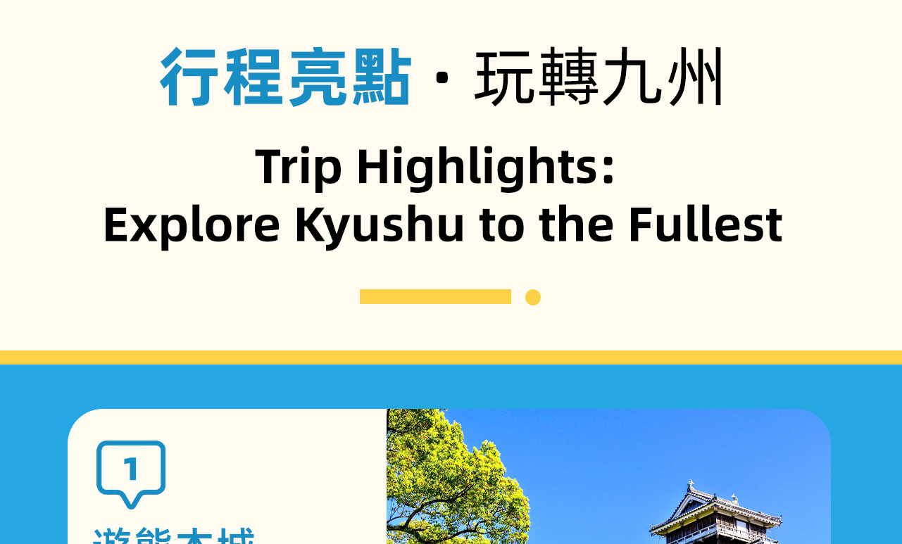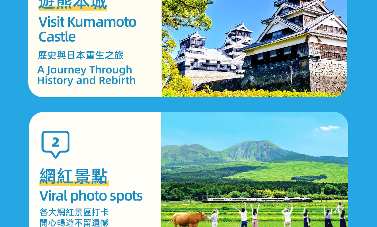 - 熊本城:參觀日本三名城之一,欣賞歷史建築與櫻花美景